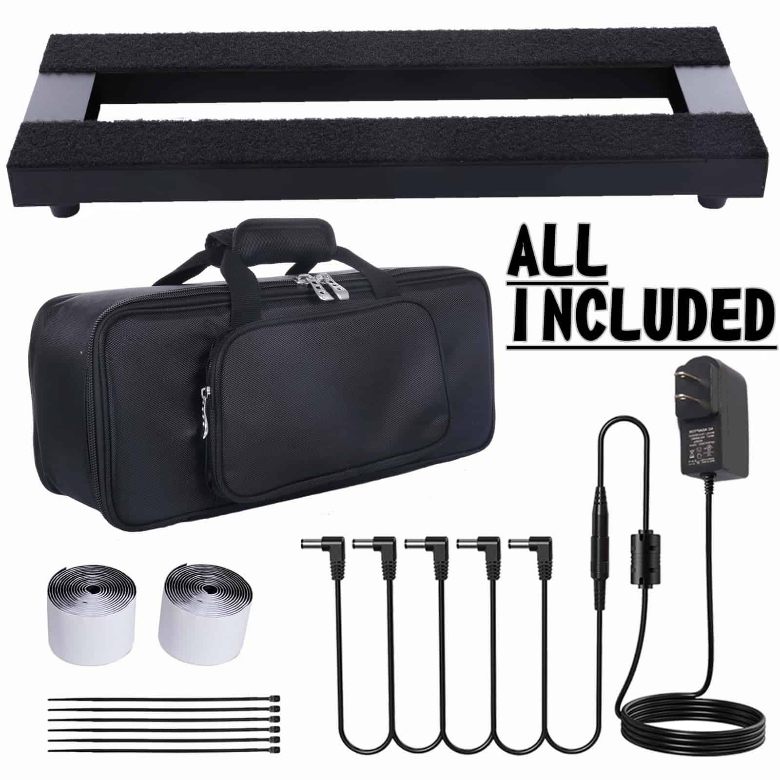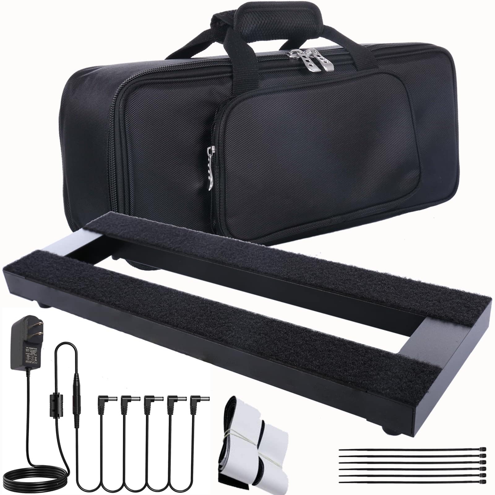 Tablero de Pedales resistente hecho de Aluminio ligero. Ideal para organizar y transportar tus efectos de guitarra de forma segura. Incluye una bolsa para facilitar su almacenamiento y transporte.