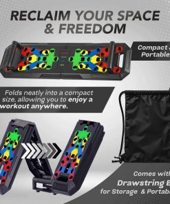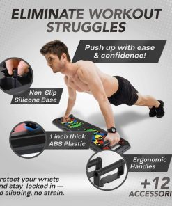 Tu solución completa de fitness – Maximiza tu entrenamiento con nuestro tablero de push up GrowGlo. Combínalo con el kit de barra de pilates con bandas de resistencia para mejorar tu entrenamiento. El tablero de ABS reforzado con objetivos codificados por colores te ayuda a concentrarte en grupos musculares y lograr resultados reales. Elimina las dificultades del entrenamiento – Con nuestros mangos ergonómicos y base de silicona antideslizante, ahora puedes hacer push up con facilidad y confianza. Di adiós a la tensión en las muñecas y al deslizamiento, y abraza una experiencia de gimnasio portátil que te mantiene seguro mientras desafías tus límites. Recupera tu espacio y libertad – Lleva tus entrenamientos de pecho al siguiente nivel con nuestro equipo de gimnasio compacto y plegable. Perfecto para equipos de entrenamiento para hombres y mujeres, se pliega ordenadamente en un tamaño compacto, permitiéndote disfrutar de un entrenamiento en cualquier lugar. Desbloquea tu fuerza oculta – Activa tus músculos con este tablero de pilates para entrenamiento en casa, revelando una figura esculpida y una definición mejorada. Nuestro tablero de ejercicios asegura que cada movimiento esté dirigido de forma precisa, brindando una fuerza que nunca imaginaste posible. Regala transformación – Este kit de entrenamiento no es solo un equipo cualquiera, es equipo de entrenamiento en casa para hombres y mujeres que ofrece resultados. Con su calidad premium, muestra que te preocupas por sus objetivos de fitness y bienestar, ofreciendo un recordatorio diario de tu apoyo.