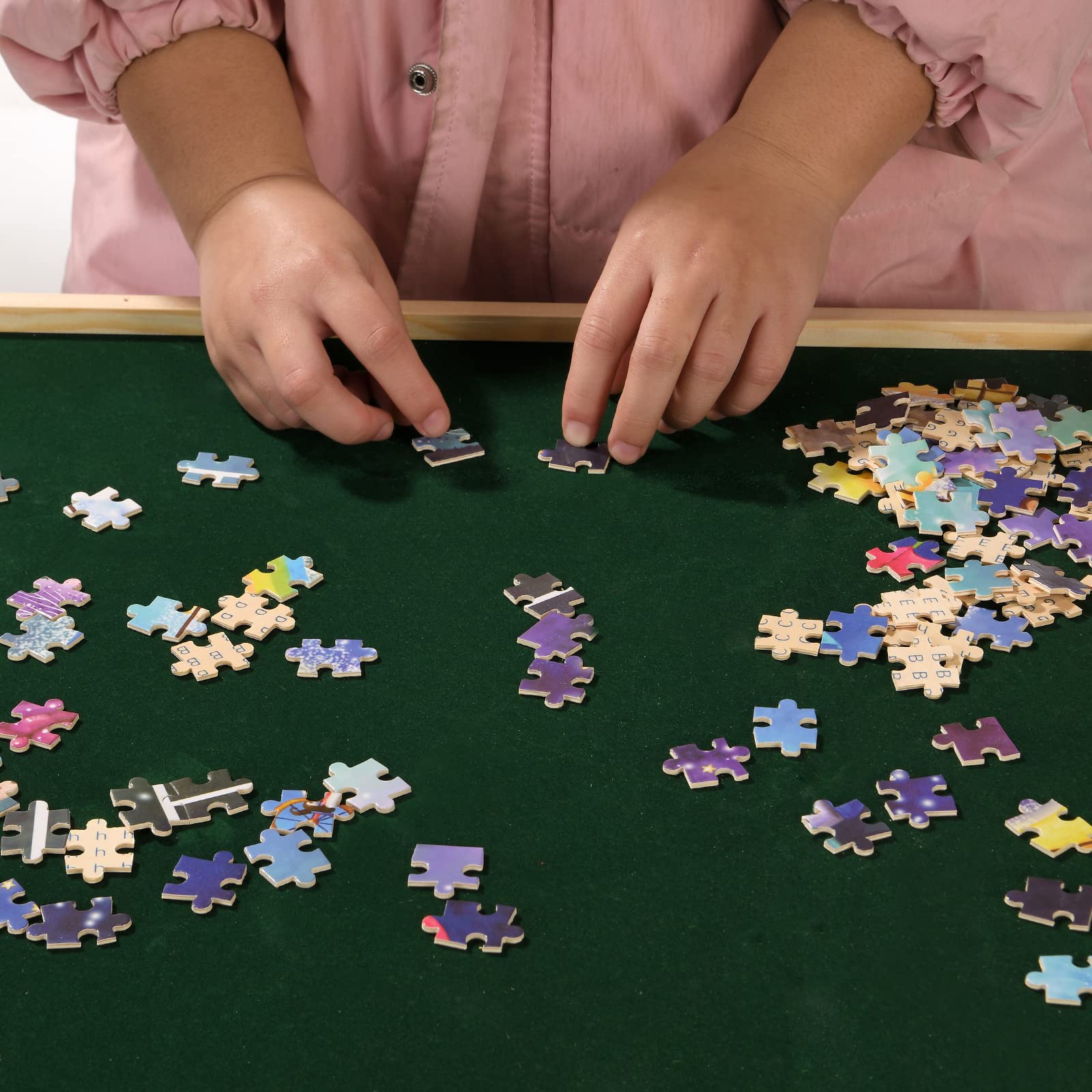 Si estás desarrollando un terrible dolor de hombros, cuello y espalda superior con el tiempo al armar rompecabezas en una mesa de comedor y es difícil mantener un rompecabezas «en progreso» en la mesa, este tablero resolverá perfectamente el problema. Es un tablero bastante rígido, lo que permite girar fácilmente el tablero para llegar a la mitad superior del rompecabezas, y pausar el juego en cualquier momento sin que las piezas se muevan o se deslicen. ¡Recomendamos mucho esto para los amantes de los rompecabezas!