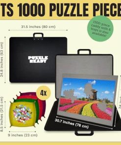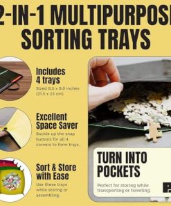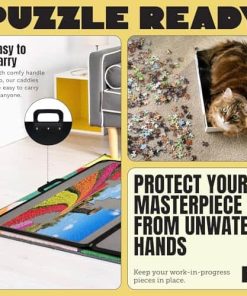 2. Tamaño perfecto para tus rompecabezas – Tu nuevo espacio de trabajo Porta-Puzzle mide 24″ x 30.7″ y se adapta a la mayoría de los rompecabezas de 1000 piezas. 2 en 1 Bandejas de Clasificación de Rompecabezas Coloridas multifunción te ayudan a mantener tus rompecabezas organizados y a mantener tus rompecabezas incompletos seguros de mascotas y niños hasta la próxima vez. ‘¿Listo para ir más grande ¡Echa un vistazo a nuestro Tablero de Caddy de Rompecabezas de 1500 Piezas!’.