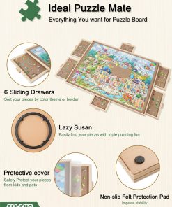 Nuestro tablero de rompecabezas de 2000 piezas es ideal para todos aquellos que aman los rompecabezas. Está hecho de material duradero y de alta calidad, con una superficie suave y antideslizante que brinda un área maravillosa para armar tus rompecabezas favoritos con tus amigos o familiares. Los 6 cajones deslizantes te permiten organizar tus piezas por color, tema o borde, manteniéndolas categorizadas mientras armas tu rompecabezas. Cada cajón está diseñado con un mango para facilitar su apertura y cerrar la cubierta translúcida para proteger tu obra maestra del polvo, el agua y cualquier curioso. El diseño giratorio Lazy Susan te permite ensamblar tus rompecabezas de forma divertida y eficiente, con un sistema de giro suave y estable para alcanzar cualquier sección que necesites. Es fácil de transportar y almacenar en pocos segundos, permitiéndote guardar tu rompecabezas de forma segura rápidamente. Este tablero de rompecabezas es el regalo perfecto para cualquier amante de los rompecabezas, ayudando a fomentar la interacción de calidad y la estimulación estratégica mientras arman sus rompecabezas favoritos. ¡Agrega un tablero giratorio a tu carrito hoy mismo!