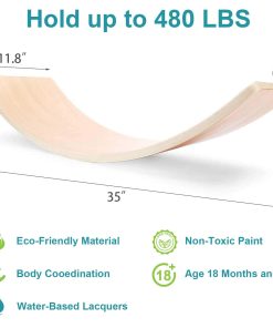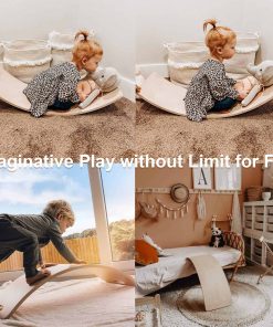 Como un juguete de aprendizaje abierto de lujo, el Tablero de Tambaleo de Madera WOOD CITY es todo lo que puedas imaginar – un columpio, un puente, una tienda, una cabaña, una piedra de paso, una silla, un túnel, un puente, y mucho más, lo cual ayuda a los niños a convertir lo que imaginan en realidad. El tablero de equilibrio para niños está diseñado para estimular el sistema vestibular y la postura corporal. El equilibrio de los niños se fortalecerá cuando se coloquen en el tablero de tambaleo con un centro de gravedad alto. Apoya a los músculos responsables de la postura correcta y desarrolla un sentido de equilibrio. El tablero es un juguete de madera que crece con el niño y también es muy adecuado para adultos. Para ponerse en forma, estirar la espalda (como medio de ayuda para sentarse) en ejercicios de yoga, para entrenar el equilibrio, o simplemente porque es divertido. Es posible realizar una amplia gama de ejercicios en el tablero de madera. Adecuado para gimnasio y hogar. Madera natural de la más alta calidad, lacas ecológicas. La madera tiene una coloración, textura, grano y patrones minerales únicos en la capa externa, lo que hace que cada tablero sea único. Es una excelente opción de regalo educativo para niños de 18 meses en adelante. Mide 35 pulgadas de largo, 11.8 pulgadas de ancho, 0.66 pulgadas de grosor y 6 pulgadas de altura en el punto más alto. Esta pieza duradera de mobiliario Montessori es un artículo sólido de herencia que se puede utilizar durante muchos años de aventura. Puede soportar de forma segura hasta 480 libras para que los amigos también puedan unirse a la diversión.