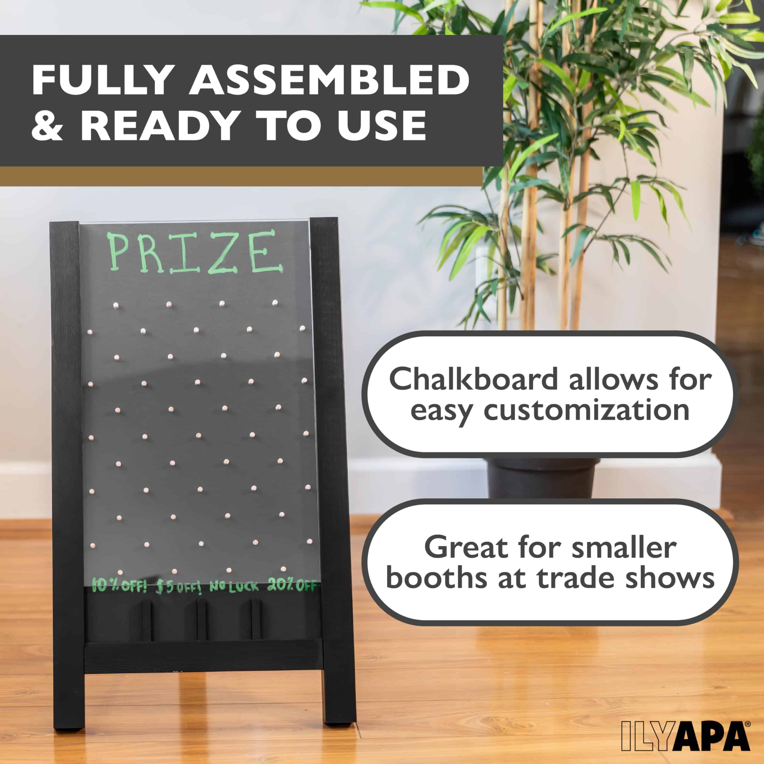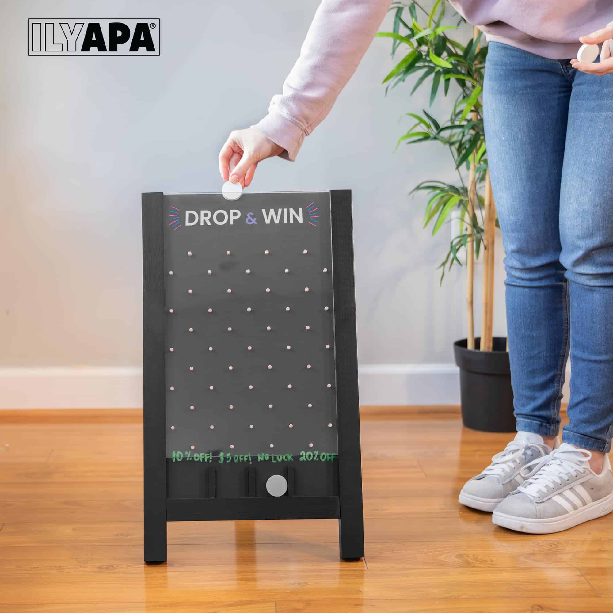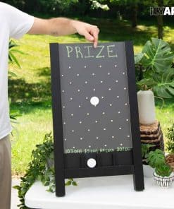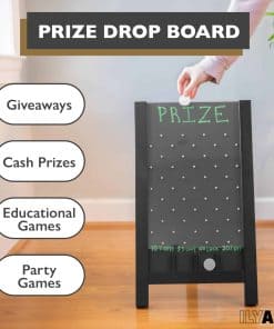 ¡Eleva tu próximo evento de feria, exposición, carnaval o fiesta con la emocionante emoción del Tablero de Plinko de Ilyapa! Este tablero de premios portátil y grande es un clásico que agrada a las multitudes y es fácil de montar, atrae instantáneamente a la gente. Perfecto para generar clientes potenciales y aumentar la participación, este gigantesco juego de Plinko cuenta con una resistente construcción de madera e incluye todo lo que necesitas para comenzar a jugar: 8 discos de monedas, tiza y un borrador magnético. Observa cómo los jugadores dejan caer sus discos o fichas por el tablero de Plinko, navegando por los pines para tener la oportunidad de ganar grandes premios. Ya sea que estés buscando juegos de feria grandes, un divertido juego de discos, una actividad llamativa para ferias comerciales o un juego de mesa interactivo para tu próximo evento, el Tablero de Plinko de Ilyapa ofrece emoción y recuerdos duraderos. Respaldamos nuestros productos al 100%. ¡Ordena tu juego de Plinko hoy y que comience la diversión!
