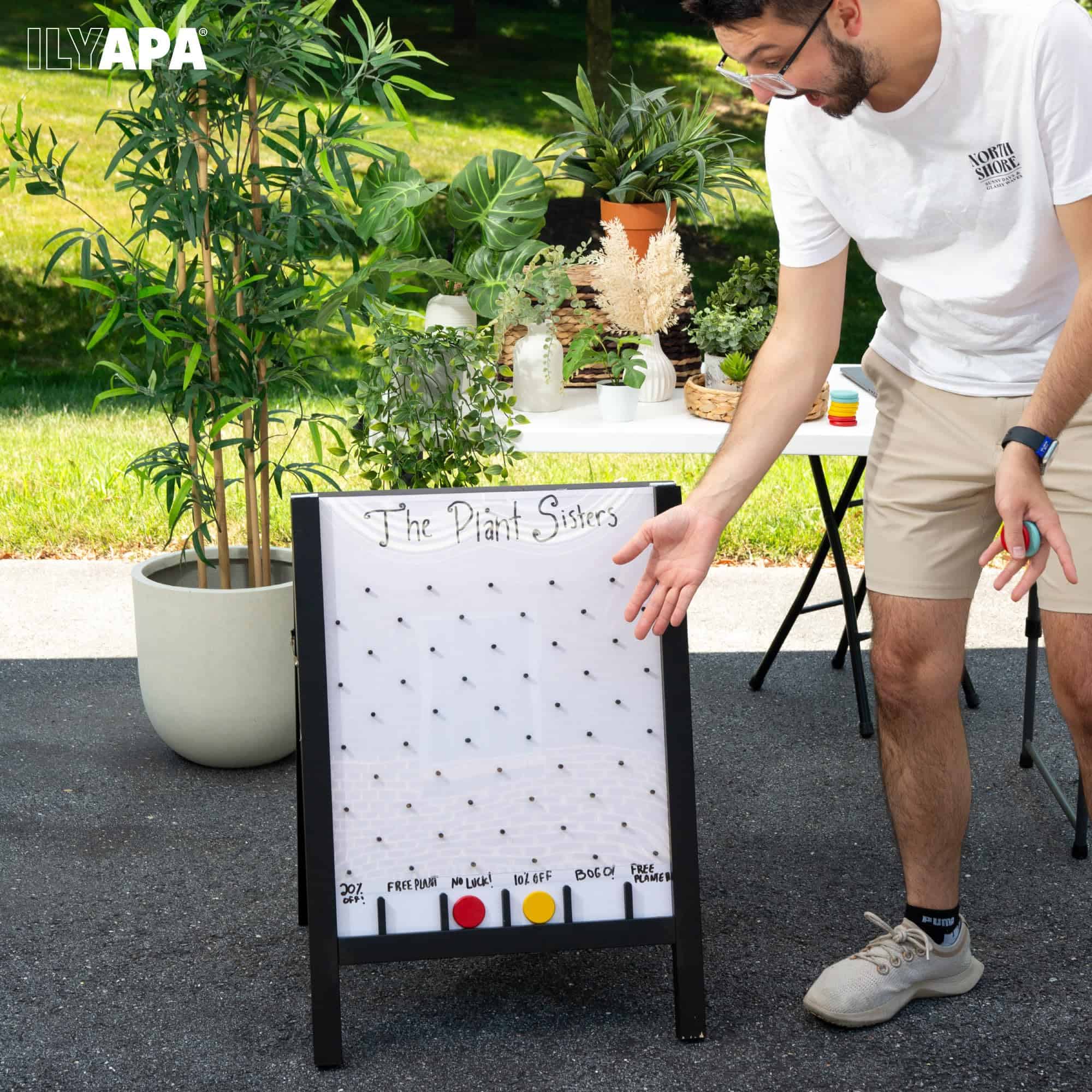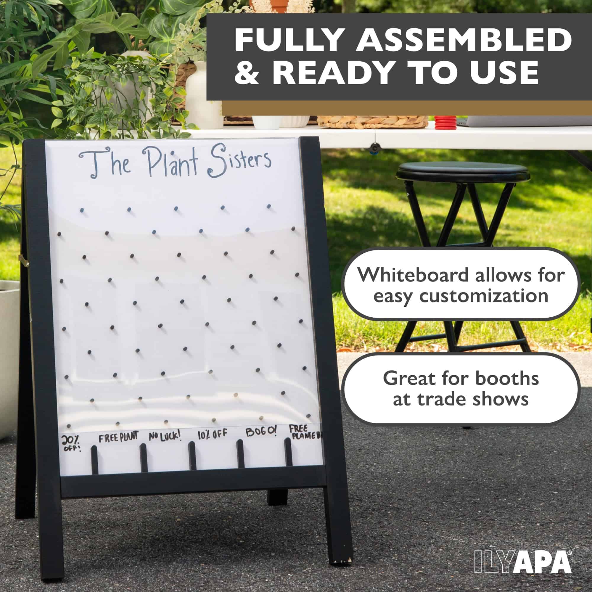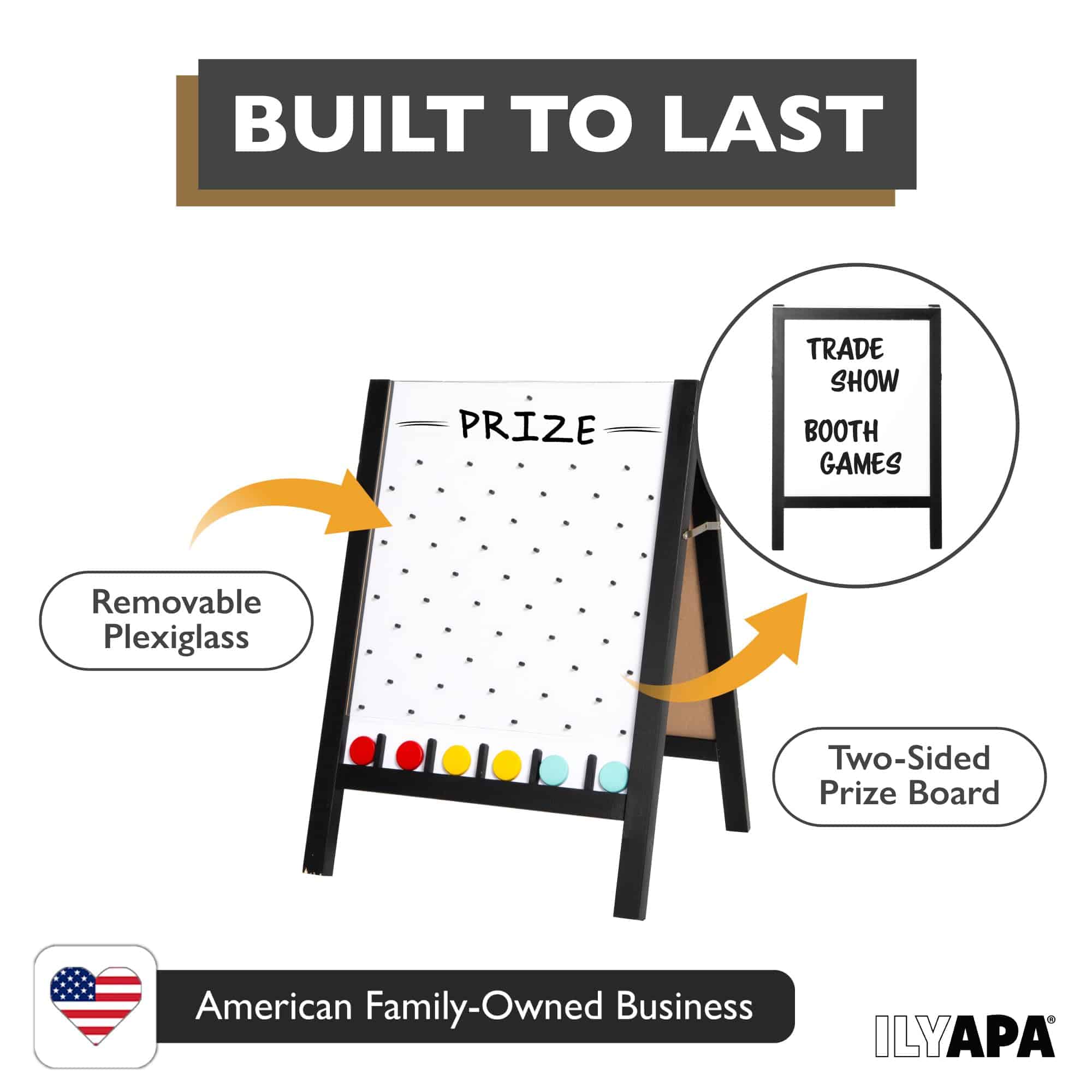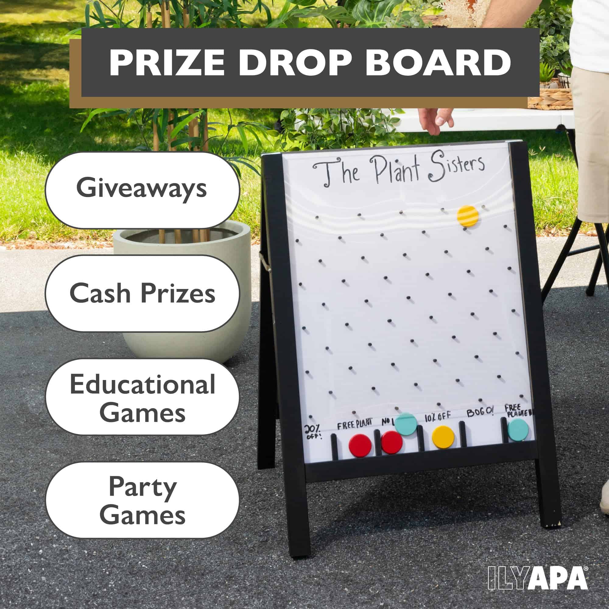 Tablero Ilyapa – Juego de Premios Portátil Grande para Eventos y Ferias Comerciales – Tablero de la Moneda de Doble Cara de 20 x 31 Pulgadas – Incluye 12 Discos de la Moneda, Tablero de Pizarra Blanca en Forma de A de Madera, Borrador. Atrae multitudes con la emoción clásica de este gran tablero de juego! Perfecto para exposiciones, fiestas y más. Crea expectación con nuestro tablero de premios y recopila información de contacto a medida que los asistentes prueban su suerte para ganar premios. El diseño resistente y los 12 discos de monedas incluidos significan que estás listo para jugar este juego en minutos. Mira las monedas caer y la emoción aumentar con nuestro tamaño grande de 20 x 31 pulgadas, tablero de juego llamativo. Respaldamos nuestros tableros de premios al 100%. Compra con confianza, sabiendo que estamos aquí para ayudarte si lo necesitas.