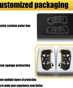 Colocación en el vehículo – Delantero, Material – Aluminio, Color – Negro y Oro (como se muestra en la imagen).