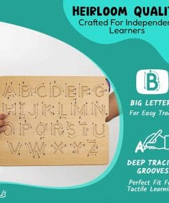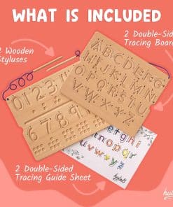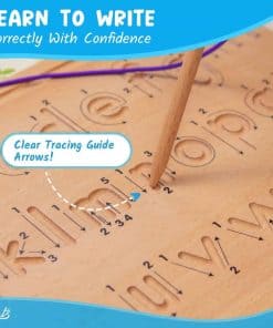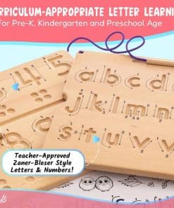 Tablero para Aprender a Escribir para Niños de 3 y 4 años Sabemos lo difícil que puede ser conseguir un momento de calma y paz en casa con tus pequeños! Con estos juguetes Montessori para preescolares de 3 años en adelante tienes docenas de formas de mantener a tus hijos ocupados con aprendizaje autónomo y lejos de las pantallas. Tracing Doce Maravillas para Preescolares Es difícil para los niños pequeños entender el concepto abstracto de letras y números. Con materiales de aprendizaje Montessori son introducidos primero a contar y rastrear físicamente números y letras. Táctil de Escribe para Niños de 3 y 4 años Les encanta aprender a través del tacto. A diferencia de los materiales tradicionales de educación infantil temprana para aprender a escribir para preescolares, estas letras de alfabeto Montessori redondeadas y hermosas están hechas de madera de haya suave pensando en los aprendices táctiles. Aprendiendo letras para niños de 3 y 4 años Se necesita tiempo para aprender a sujetar correctamente el lápiz y la formación de las letras. Perfecto como materiales de aprendizaje de autismo o juguetes de terapia ocupacional para niños de 3 a 4 años, hicimos nuestras letras lo más grandes posible para apoyar el desarrollo de habilidades motoras finas y memoria muscular para la escritura. Esto significa una curva de aprendizaje más suave para niños de todas las edades. Calidad y Durabilidad de Herencia Nuestros materiales Montessori para preescolar se fabrican con estrictos estándares de control de calidad para que aguanten los berrinches de tus pequeños durante años! Materiales: madera de haya Artículos incluidos: Tablero de rastreo de letras de alfabeto de madera de doble cara – 11.5 pulgadas de alto x 9.3 pulgadas de ancho x 0.4 pulgadas de grosor Tablero de rastreo de formas y números de doble cara – 11.5 pulgadas de alto x 9.3 pulgadas de ancho x 0.4 pulgadas de grosor Dos estilógrafos de madera – 4.3 pulgadas de largo Hoja de guía de rastreo de letras de doble cara colorida – Tamaño A4