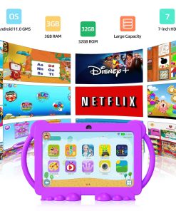 Esta tablet PC para niños es la opción de regalo perfecta para Navidad, Año Nuevo, Pascua y Cumpleaños. ¡También puedes disfrutar de momentos felices de tiempo en familia con tus niños! ¡Deja que tus hijos disfruten estudiando y jugando! Especificaciones: Batería: 3000mAh/3.7V Li-Ion Batería Tiempo de Trabajo: 6 horas Idioma: Multi-idiomas Pantalla: 7 pulgadas IPS 1024600 HDRAM: 3GBROM: 32GBOS: Android 11.0WIFI/ BT: WIFI 802.11b/g/n+Bluetooth 4.0(HS)Cámara: 0.3MP+ 2MPPuertos de Entrada/Salida: 1 x Tipo-C USB, 1 x Puerto de Auriculares, 1 x Ranura para Tarjeta Micro SDJack de Auriculares: 3.5mmAltavoz: Altavoces estéreo incorporados 8R/1.0W2Adaptador de Corriente: USB 5V/2AContenido del Embalaje:1 Tablet1 Funda para Tablet1 Protector de Pantalla1 Cable USB1 Cable OTG1 Guía de Usuario