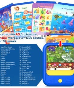 Esta tableta de aprendizaje para niños ofrece enseñanza bilingüe en inglés y español, con la posibilidad de cambiar el idioma con solo presionar un botón. Cumple con las regulaciones de sonido de Estados Unidos y cuenta con dos niveles de control de volumen. La interacción personificada incluye diferentes palabras que producen efectos de sonido y brindan información interesante. Los 5 modos de aprendizaje abarcan desde el aprendizaje de palabras hasta juegos interactivos, fomentando el desarrollo de habilidades fundamentales como el lenguaje, el vocabulario y la pronunciación. El diseño sin pantalla ayuda a reducir el tiempo que los niños pasan frente a las pantallas y fomenta la interacción familiar. ¡Perfecto para aprender de manera divertida y educativa!