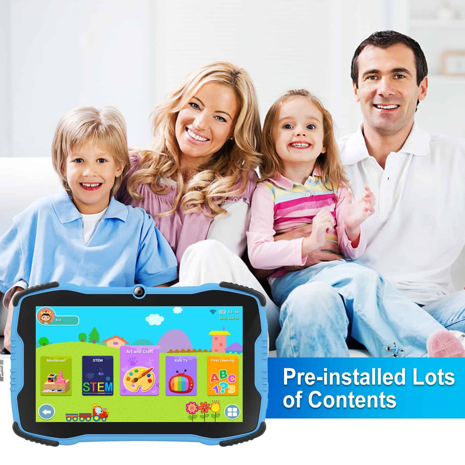 1. Tableta para niños de alto rendimiento Esta tableta para niños funciona con el sistema Android y está equipada con un procesador de cuatro núcleos, 2 GB de RAM, 32 GB de ROM (que se puede ampliar hasta 64 GB, mediante tarjeta micro SD), lo que hace que las aplicaciones y los medios se ejecuten de forma fluida. Admite conexiones wifi, bluetooth y hotspot.