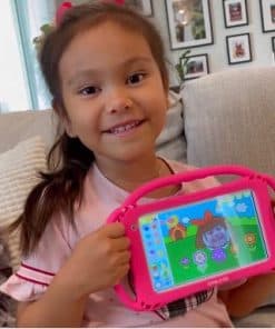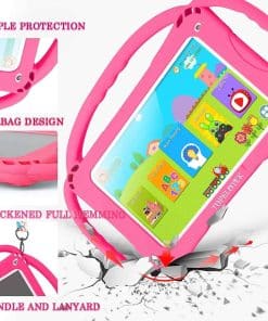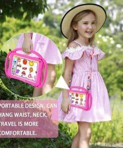 2: ¡Qué divertida tableta para niños! Diseño con tres asas y un gran tamaño de pantalla para niños y adultos, muy fácil de sostener, muy ligero para llevar a cualquier parte. La edición para niños de la tableta para niños con soporte de plástico ajustable, es muy duradera y segura para los niños incluso si la dejas caer al suelo