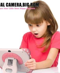 Características de la Tableta para Niños 1. Tablet para Niños Wifi Android de 7 pulgadas con Nuevo Diseño en Forma de Champiñón con Procesador de Cuatro Núcleos, Disfruta de una velocidad de transmisión más rápida y mira películas/programas de TV o juega juegos, 1 GB de RAM y 32 GB de ROM con Doble Cámara 0,3MP frontal 2,0 MP trasera, permiten a los niños capturar sus momentos felices cuando se inspiran, Con los 32 GB de almacenamiento incorporado, puedes disfrutar de videollamadas claras, selfies, fotos, videos y Guarda Cada Momento Maravilloso. 2. Tableta para Niños con Certificación de Google Mobile Services, Software para Niños precargado que proporciona cientos de aplicaciones educativas, Lo único que necesitas hacer es Inicia sesión en Google Play Store y descarga aplicaciones Android gratuitas como Aprendizaje de Matemáticas, Dibujo, Video de Dibujos Animados, etc. 3. Batería de Larga Duración, Nuestra tableta para niños utiliza una batería de iones de litio de 3500 mAh, permite hasta 6-7 horas de lectura o 4 horas de reproducción de video con una sola carga en uso normal, haciéndolo conveniente para acampar en familia, vuelos largos y viajes por carretera, Deja que tu bebé disfrute de su tiempo. 4.Edad recomendada: 3-14 años. Advertencia: Menores de 2 años necesitan compañía. Especificaciones de la Tableta para Niños: Sistema Operativo de la Tableta para Niños: Android 10.0 OS Tamaño de Pantalla de la Tableta para Niños: 7 pulgadas 1024×600 Capacidad de la Tableta para Niños: 1 GB de RAM, 32 GB de ROM Cámara de la Tableta para Niños: Cámara Doble, 0,3MP frontal, 2,0MP trasera Conexión de la Tableta para Niños: Inalámbrica, Bluetooth Batería: Incorporada 3500mAh Capacidad Puertos de la Tableta para Niños: Tipo-C Red de la Tableta para Niños: WIFI inalámbrico Idioma de la Tableta para Niños: Idiomas Multinacionales (Incluido Español) Memoria Ampliable: Admite Tarjeta Micro SD Extensible a 64GB Lista de Embalaje de las Tablet para niños: 1 Tableta para Niños de 7» 1 Cable de Carga Tipo-C para Tabletas para Niños 1 Cargador DC para Tabletas para Niños 1 Manual de Usuario para Tabletas para Niños 1 Funda a Prueba de Niños para Tabletas para Niños 1 Protector de Pantalla para Tabletas para Niños