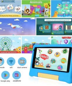 La tablet para niños de 7 pulgadas viene con muchas aplicaciones de aprendizaje para niños, que les dan acceso a miles de aplicaciones gratuitas, juegos, videos, libros electrónicos. Estos contenidos pueden estimular la imaginación, la creatividad y la autoconfianza de los niños. Con nuestra tablet, los niños se sumergirán en el océano del conocimiento de manera segura y darán a los padres tranquilidad. La pantalla de protección ocular de 7 pulgadas de la tablet para niños está equipada con una pantalla IPS HD de 1024×600 de buena calidad, que proporciona una experiencia visual sobresaliente, además del ajuste automático de brillo de la pantalla, que puede proteger mejor los ojos de los niños. Esta tableta es adecuada para todos los niños y niñas, un buen compañero para el estudio y entretenimiento de los niños. Nuestra tablet para niños ofrece una garantía sin preocupaciones y servicio al cliente de por vida. Estamos aquí para responder cualquier pregunta sobre esta tablet para niños las 24 horas del día. Perfecto para regalar a sus hijos en cualquier ocasión.
