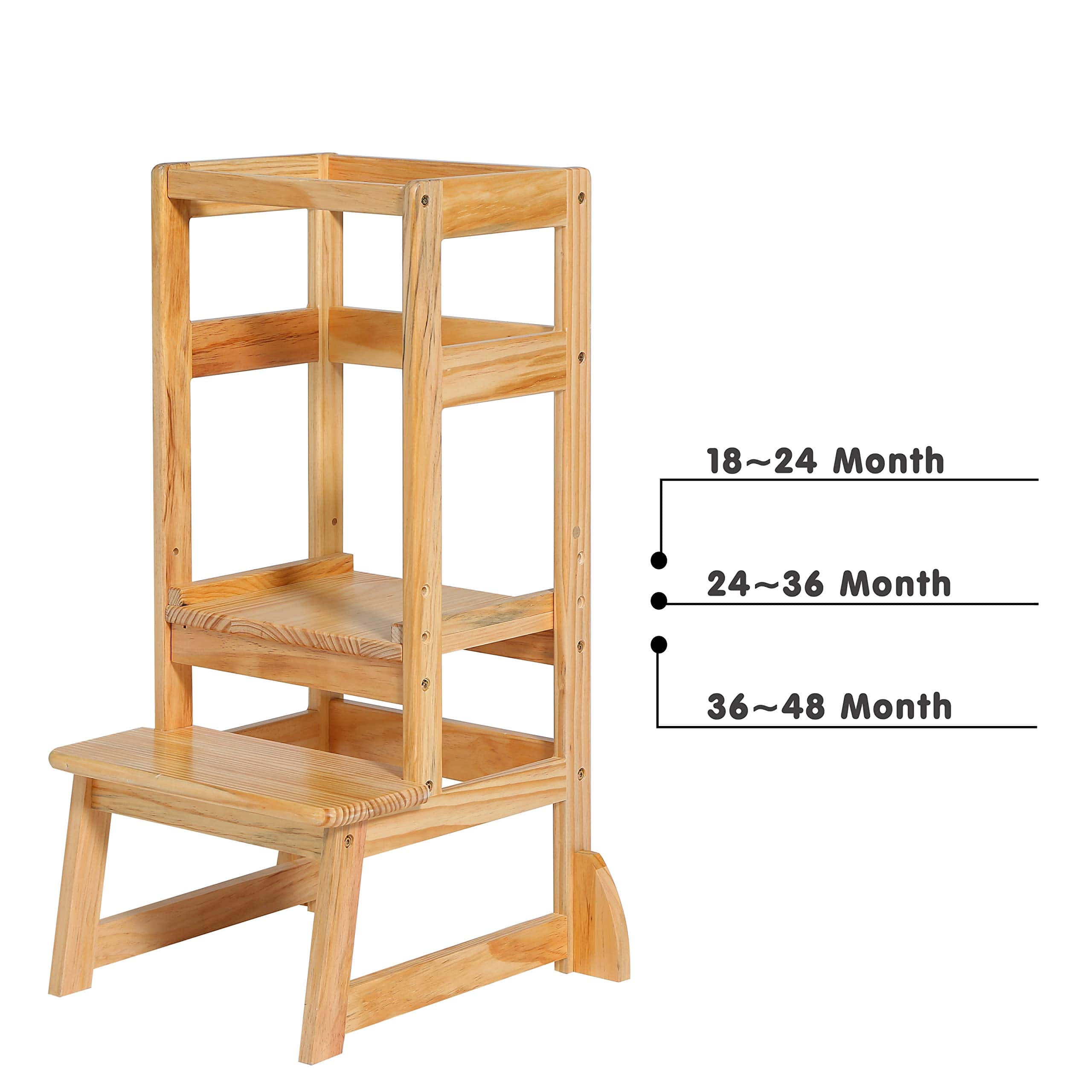 3. Estructura sólida de madera maciza y barandillas de 4 lados, el taburete de cocina garantiza un ambiente de apoyo y seguro; también tiene una capa segura y sin plomo aplicada, enfatizando la salud de su hijo.