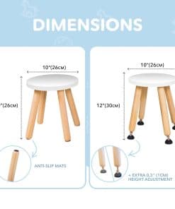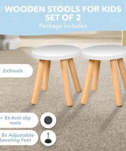 Taburete de Madera para Niños y Niñas – Juego de 2 – Blanco