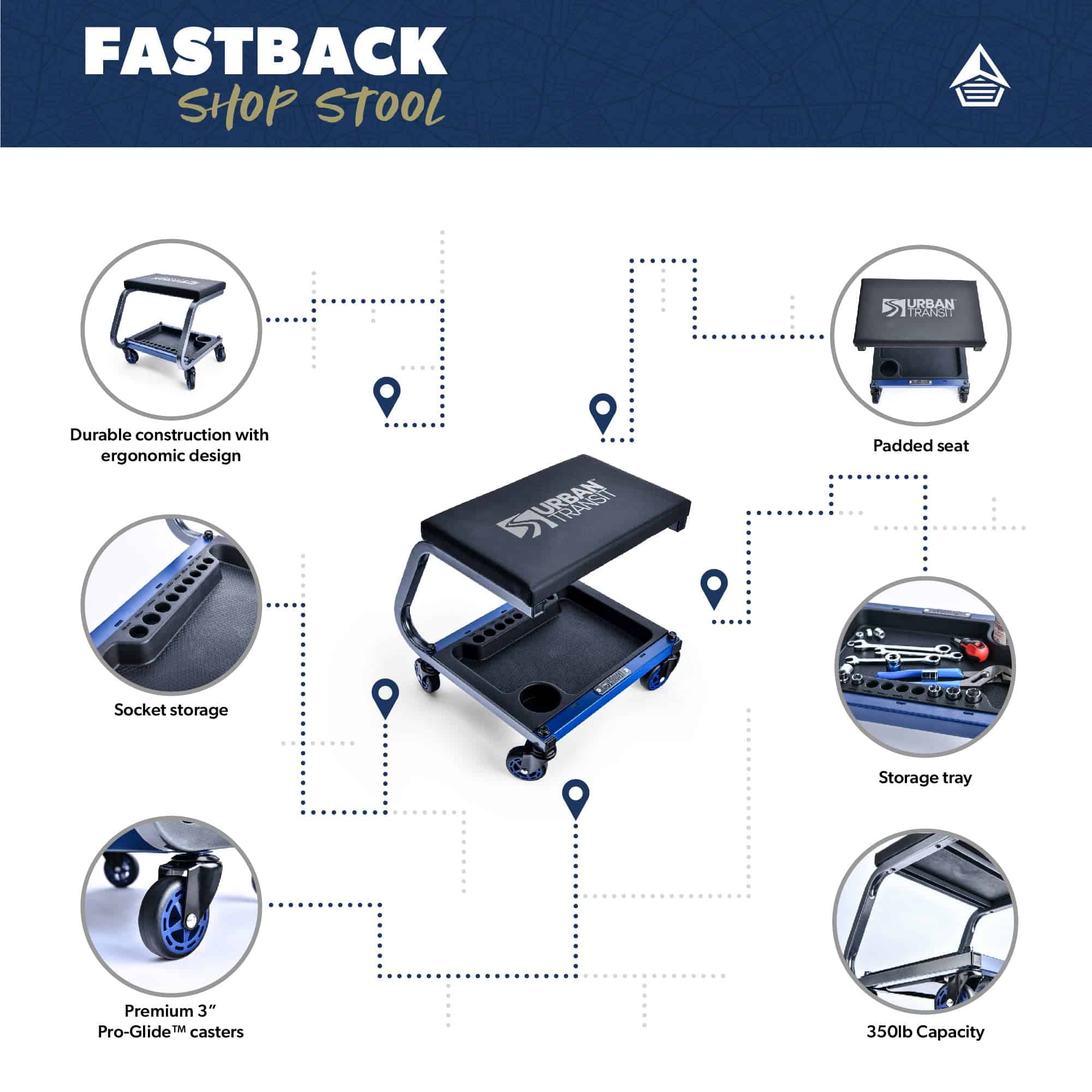 Con un diseño elegante inspirado en su homónimo, el Taburete de taller FastBack es el compañero perfecto para largos días en el taller o garaje. Ya sea que seas mecánico profesional, entusiasta de los autos o un DIY extraordinario, confía en este taburete de taller para cumplir su promesa de comodidad y conveniencia.