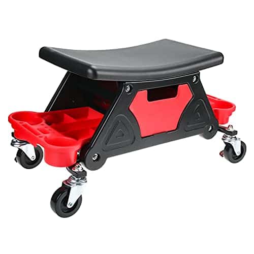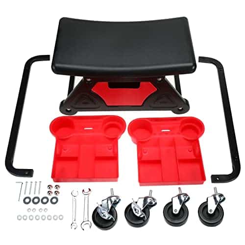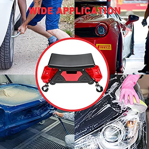 Ya seas un mecánico o te dediques al detallado de autos; Este taburete rodante es básicamente un caja de herramientas móvil y te ayuda a hacer el trabajo. –El asiento de rodillo puede soportar una alta capacidad de carga de 300 libras. –La superficie cóncava antideslizante de 18 pulgadas x 10 pulgadas te permite trabajar en el garaje de forma más cómoda. –Tres cajones extraíbles te ayudan a colocar más herramientas. –Dos ruedas bloqueables hacen que sea fácil para ti trabajar en una pendiente. –La altura del taburete mecánico está diseñada específicamente para refinar el lateral o la rueda de un automóvil. –El asiento de garaje con ruedas te permite deslizarte fácilmente alrededor del garaje o tienda para reducir el estrés en tu cuerpo. Características: 1. Ruedas de goma con bloqueo. 2. Bandeja de almacenamiento para guardar toallas, pequeños cepillos y herramientas. 3. Puede contener 4 botellas de 16 oz para un acceso fácil. 4. Peso máximo de 300 lb. 5. Tamaño: 25 1/2 x 13 x 13 pulgadas aproximadamente. Incluye: 1 Taburete Mecánico Rodante