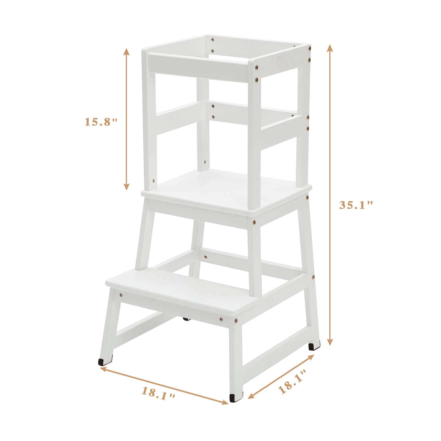 5. Diseño universal: Esta torre de pie con barandal de seguridad para niños en la encimera de la cocina es adecuada para niños de 18 meses a 4 años, con una capacidad de carga de 150 libras. Se necesita montaje. Dimensiones de la plataforma de la torre: 18″L x 18.1″W x 34.8″H