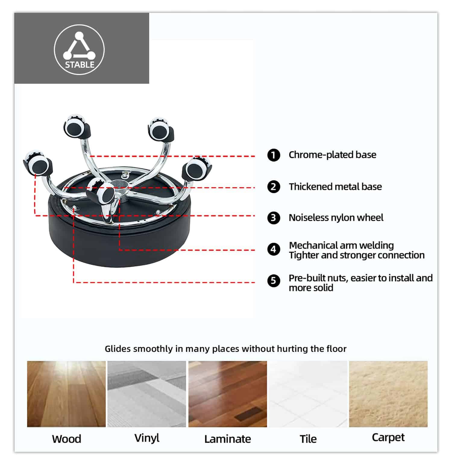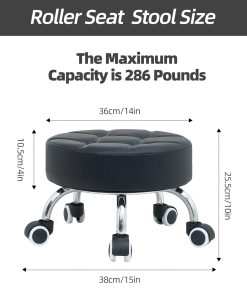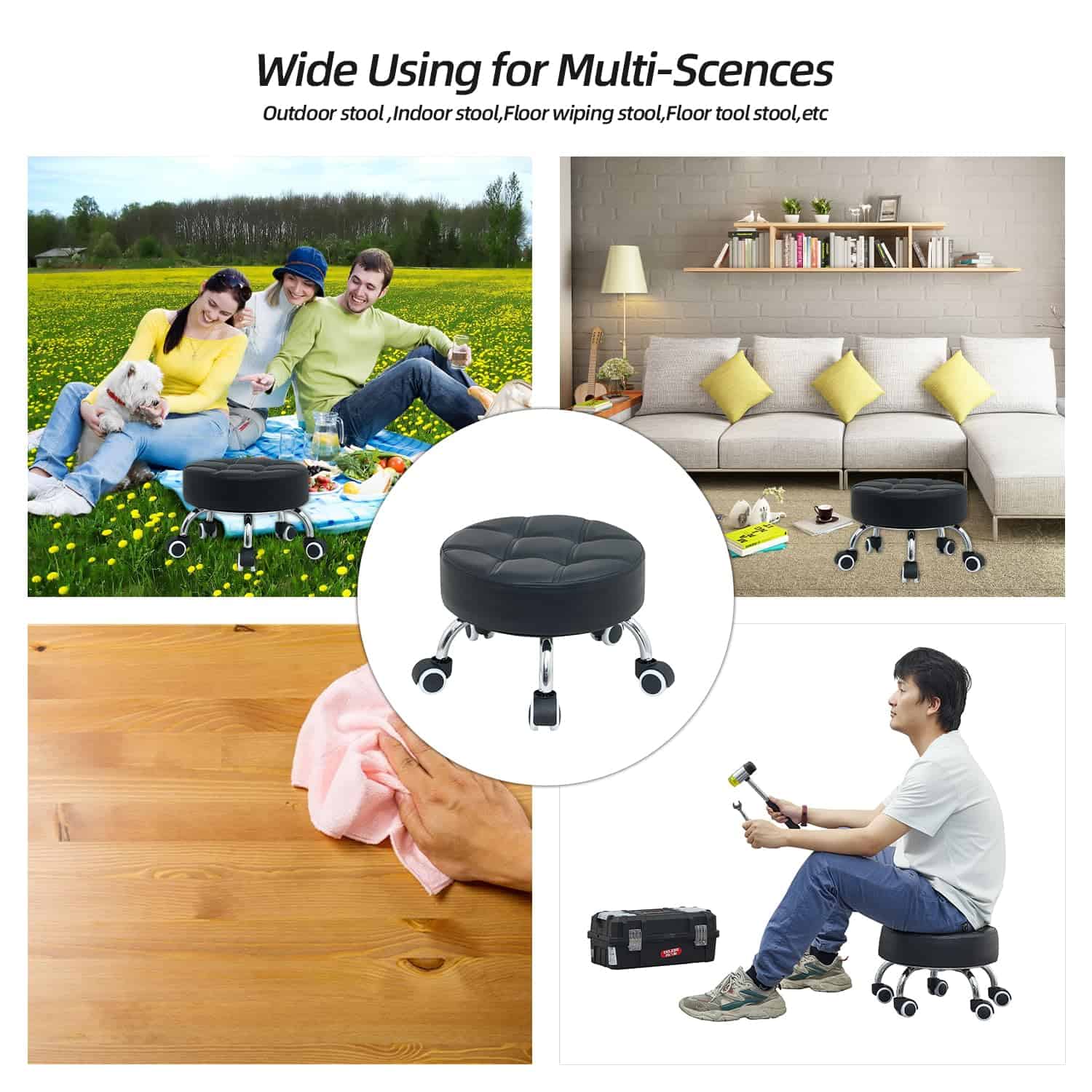 5. Resistente y Estabilidad mejorada: Este taburete corto con ruedas está equipado con un marco de metal engrosado y ruedas reforzadas para una mayor durabilidad y estabilidad. Bien construido, puede soportar pesos de hasta 286 libras.