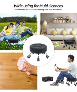 4. Movilidad fácil y ruedas giratorias de 360°: El taburete con ruedas está equipado con ruedas giratorias para un movimiento sin esfuerzo a cualquier rincón, mejorando la eficiencia del trabajo. Ligero, las ruedas se mueven libremente, traen más comodidad a la vida.