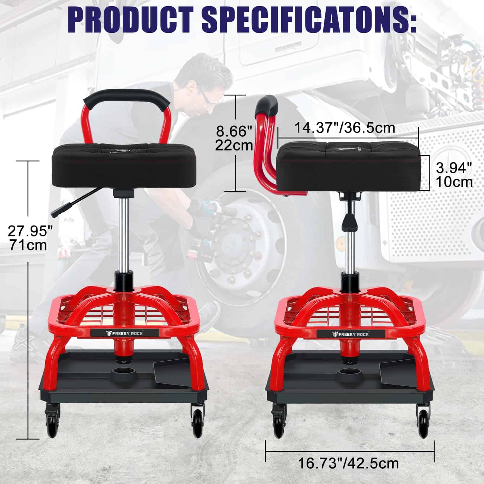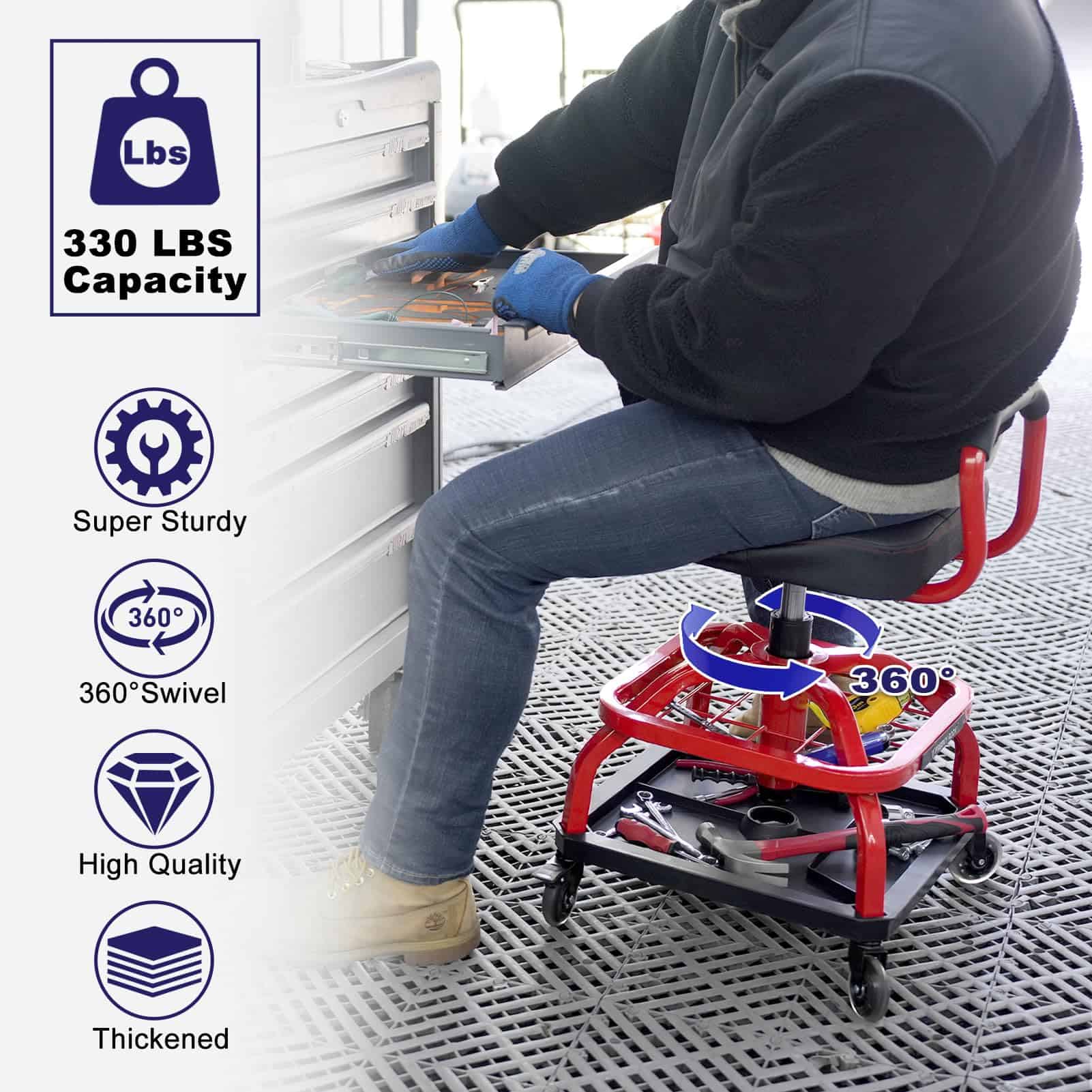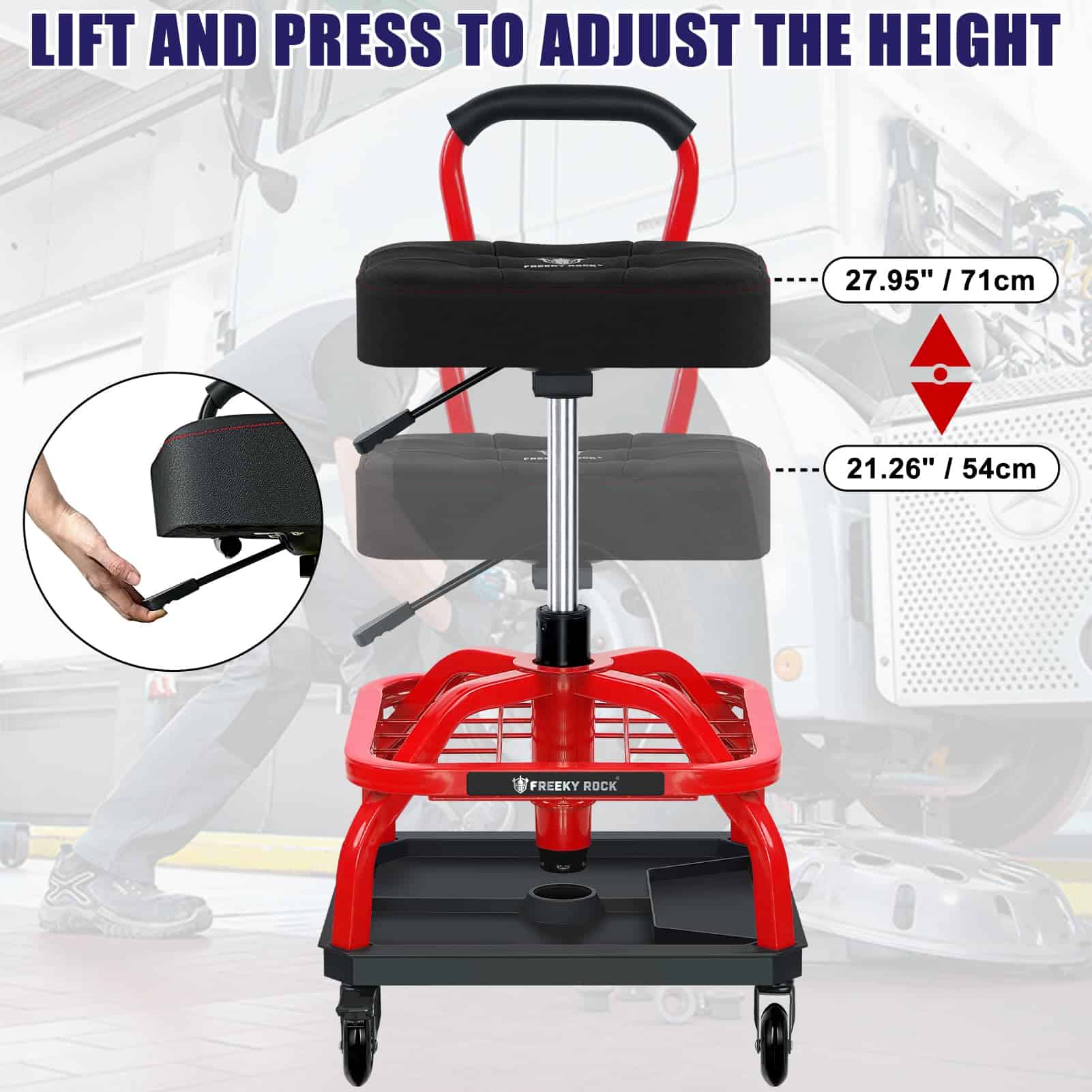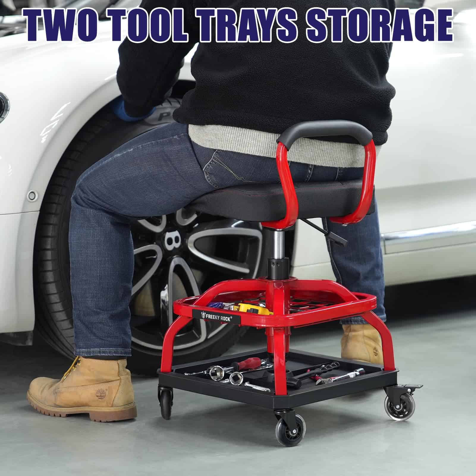 Taburete Rodante FREEKYROCK con Ruedas, Silla -Rojo