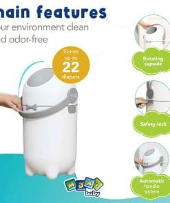 1. ¡ADIÓS A LOS OLORES! – Dile adiós a los olores persistentes de pañales con el Tacho de Pañales Mágico de Maxibaby. Su tapa de cierre giratorio y sistema de sellado antiolor encierran eficazmente los olores desagradables, asegurando que la habitación de tu bebé se mantenga fresca y limpia. Perfecto para una eliminación discreta e higiénica de pañales.