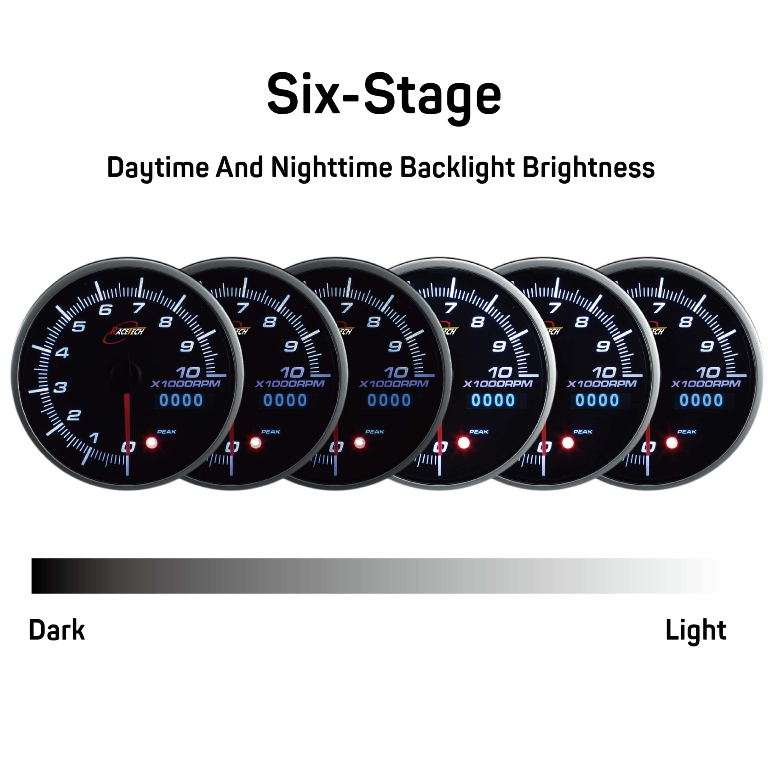 Tacómetro eléctrico RACETECH de 115MM 0-10000RPM Blanco y