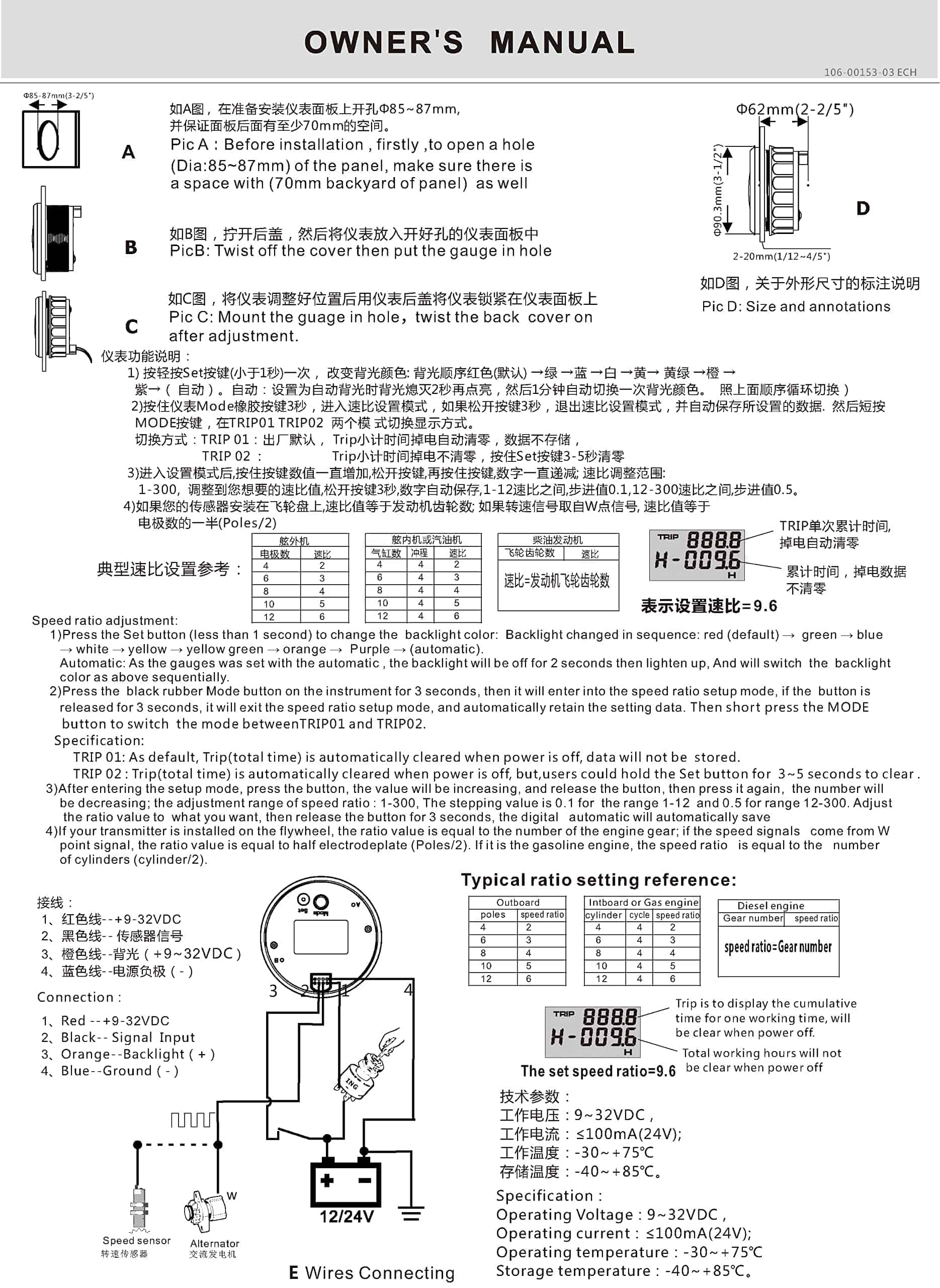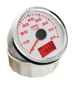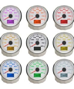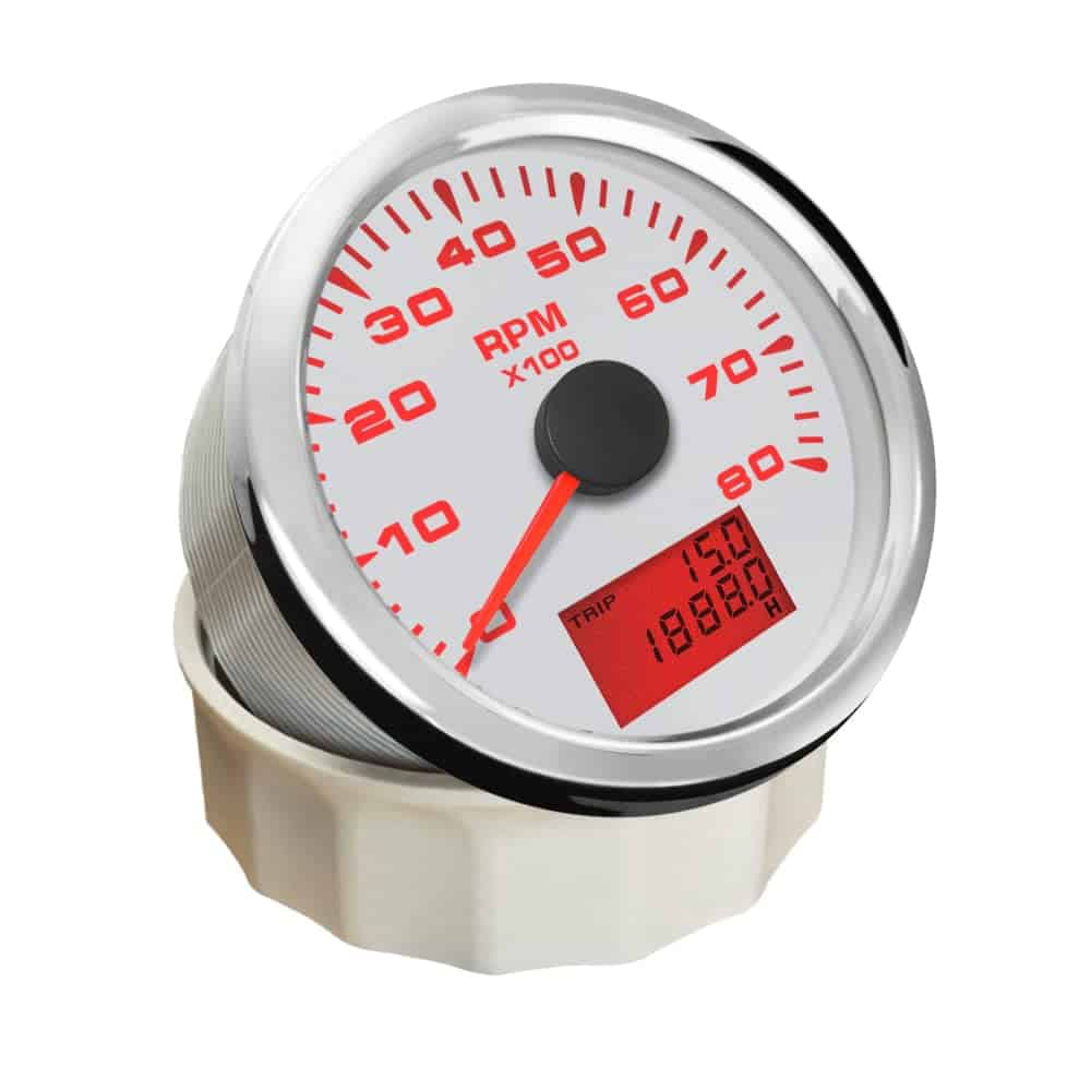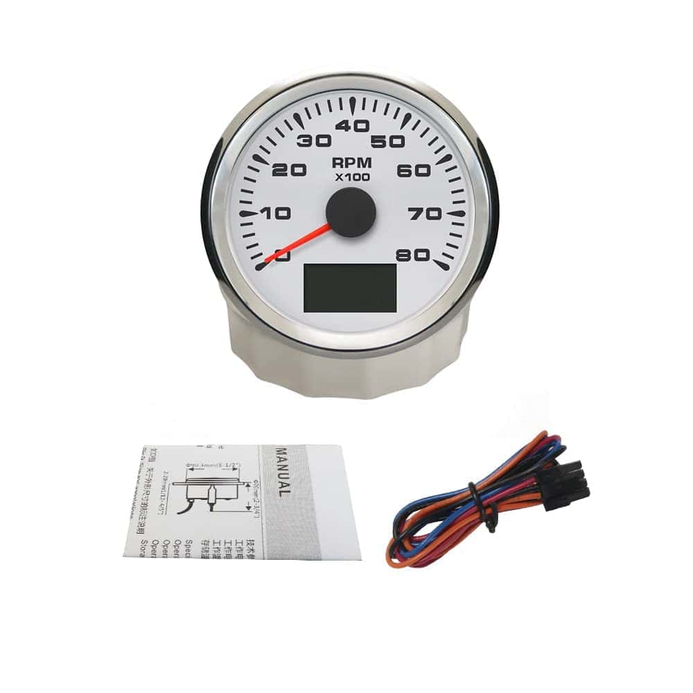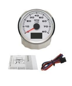 Características del Producto: -Adecuado para todo tipo de sensores de RPM de tacómetro y muestra la velocidad de rotación del motor. -Utiliza el principio de imán móvil para impulsar la aguja, con buena resistencia y antivibración. -Grado de impermeabilidad y a prueba de polvo IP67 -Motores paso a paso utilizados para medidores de paso de rango completo, gran característica con su menor consumo de energía, mayor vida útil, mayor precisión, etc. -Con vidrio curvo (con función anti-vaho) -Con diseño de voltaje de trabajo ultra amplio (voltaje de operación a largo plazo: 9-32V, Máximo hasta: 36V (1 min)). Datos Técnicos: -Dimensiones de montaje: 85mm (3-3/8″) -Rango de Indicación: 0-8000RPM -Relación de Velocidad: Ajustable de 1-300 -Voltaje de Trabajo: 9-32V (12V/24V) -Luz Trasera: Rojo, Verde, Azul, Blanco, Amarillo, Verde, Naranja, Púrpura, Automático -Funciones: tacómetro/RPM actual, hora de viaje (borrar datos después de apagar la energía) y hora total (acumular datos después de apagar la energía) -Modo de operación: pantalla LCD, motor paso a paso Incluye: 1x Tacómetro 1x Conector multiplug 1x Instrucciones de instalación