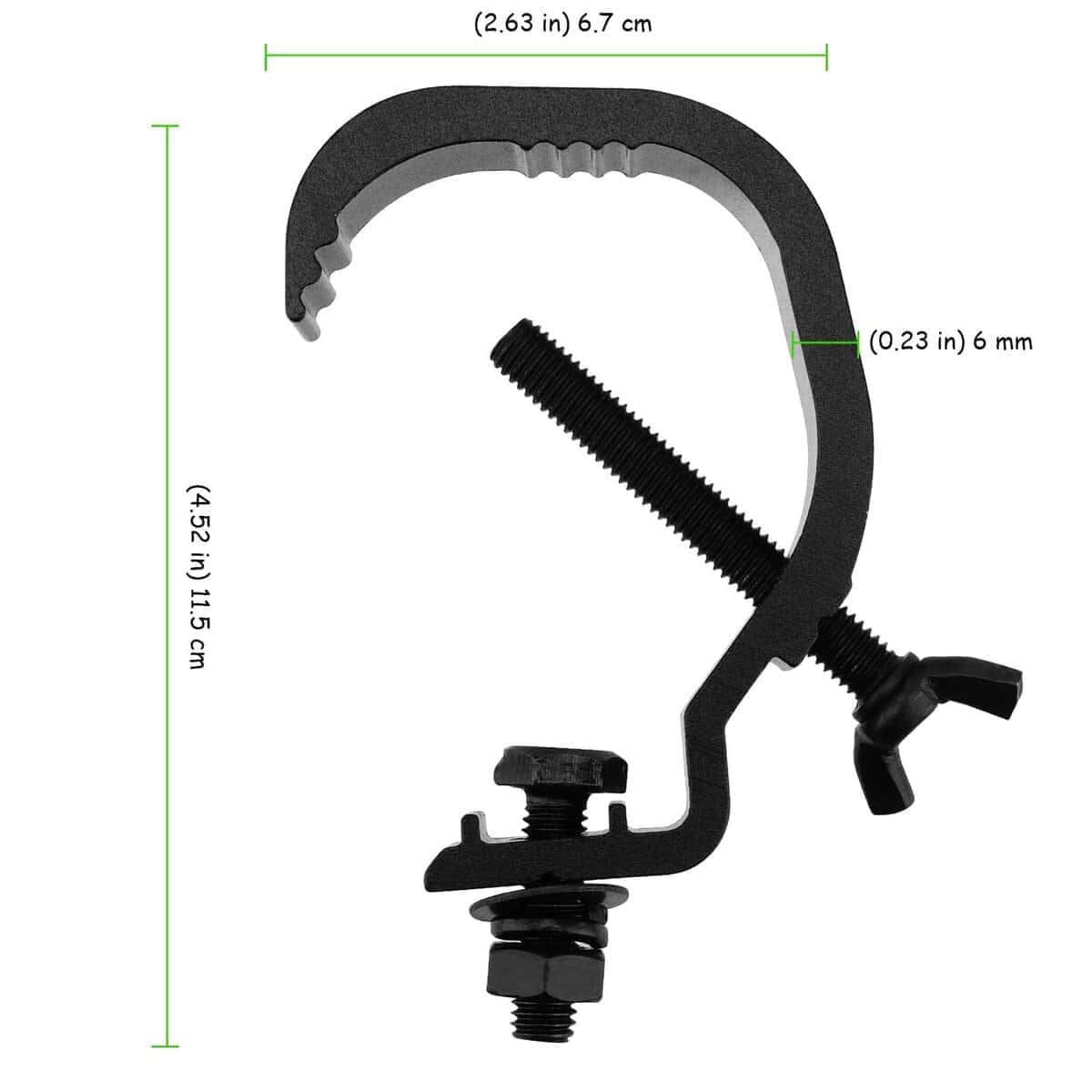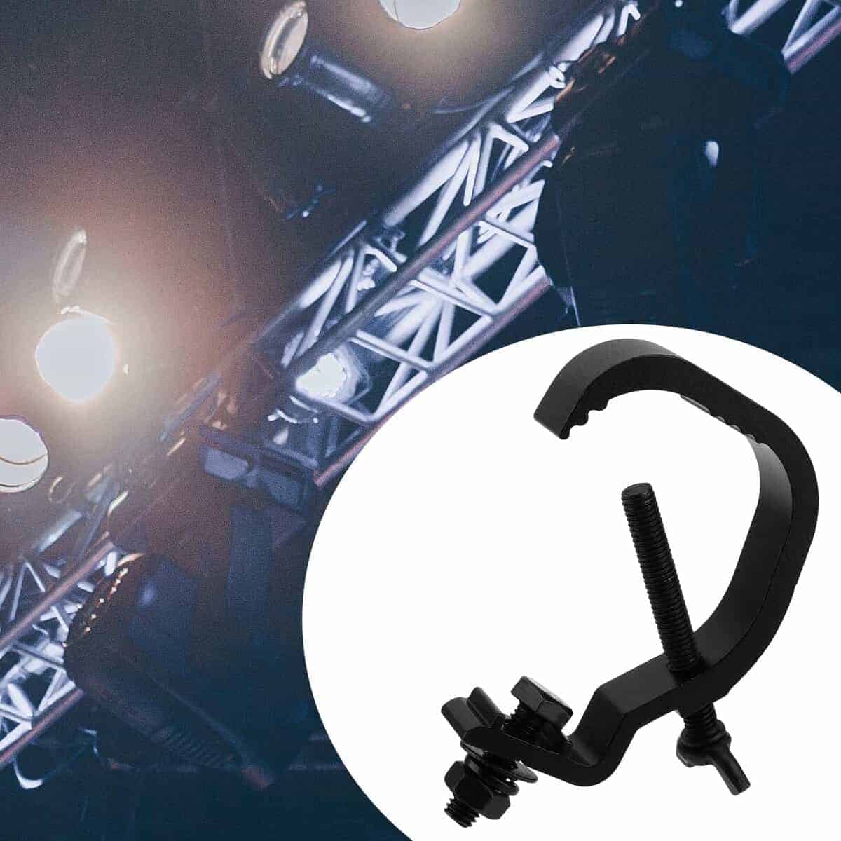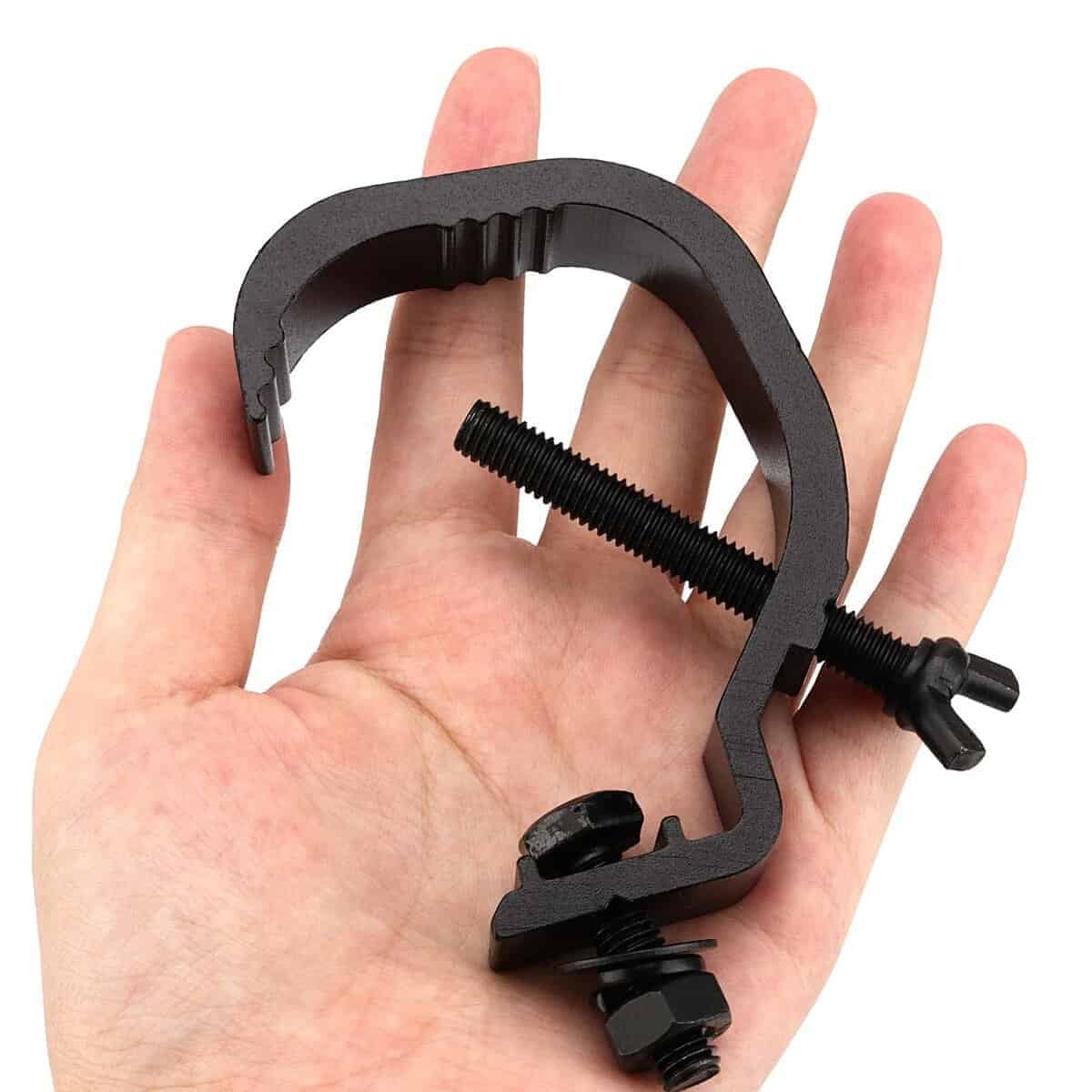 El soporte de abrazadera de truss tiene una apariencia en forma de C y es adecuado para la mayoría de las luminarias con un diámetro de tubo de 30-50 mm.