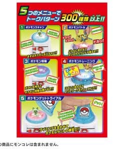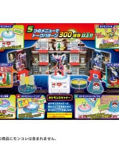 Conviértete en un Entrenador de Pokemon en un laboratorio de investigación que produce luces y sonidos! ¡Más de 300 patrones de habla en 5 menús! ¡Entrena para luchar e incluso Escáner de Pokemon! (1) Escaneo de Pokemon Coloca el moncolle en el Escáner de Pok�mon y comienza a escanear el moncolle! Pon el moncolle en el escáner y empújalo, y sonará la frase. ‘¡Este Pok�mon es Yarukiman! ¿Qué tal estoy entrenando Pok�mon? La voz del escaneo de los Pok�mon se reproduce al azar. No se puede identificar. (2) Batalla de Pokemon ¡Combina el Escáner de Pokemon y la Máquina de Batalla para luchar contra Moncole! Cuando golpeas la máquina de batalla, escucharás frases y sonidos a medida que luchas. ‘¡Wow! ¡Bissi! ¡Duck! (3) Información de Pokemon ¡Presiona el botón del Escáner de Pokemon para escuchar la información de Pokemon! ‘¡Ingazate con tus Pok�mon cuando juegues batalla! (4) Entrenamiento Pokemon ¡Combina el Escáner de Pok�mon y la Máquina de Entrenamiento para entrenar a Moncole! Mueve el moncolle según el ritmo y entrena tu movimiento. ¡Comienza el entrenamiento de ritmo. Sin embargo, ¡te tenemos cubierto! (5) Pruebas de Obtención de Pokemon ¡Combina el Escáner de Pok�mon y la Máquina de Prueba de Obtención para obtener a Moncore! Haz coincidir el tiempo y obtén una máquina de prueba. ¡Consigue! Luego obtén la máquina de prueba. ‘¡Vamos a por ello! ‘Contenido del juego: Tablero del Laboratorio de Pokemon (1), Escáner de Pokemon (1), Máquina de Batalla (1), Máquina de Entrenamiento (1), Máquina de Prueba de Obtención (1), Blanco (1), Paso (4), Puerta (2), Pegatina (1), Manual de Instrucciones (1), (Idioma inglés no garantizado)