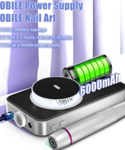 La batería recargable de 6000mAh permite una carga rápida de solo 2.5 horas, y proporciona entre 10 y 15 horas de funcionamiento continuo. La pantalla LED de alta definición muestra claramente la velocidad y la potencia, lo que facilita el uso y control del taladro de uñas.