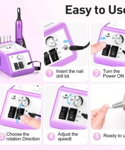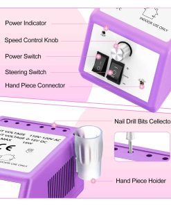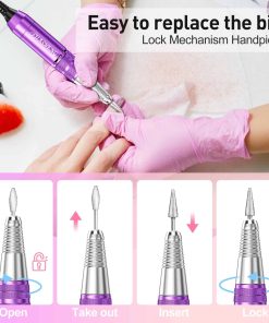 Taladro de Uñas Profesional JIASHENG, taladro eléctrico de uñas de 30000rpm, máquina de taladro de uñas eléctrico, taladros de uñas de gel para uñas acrílicas, kit de manicura y pedicura, morado