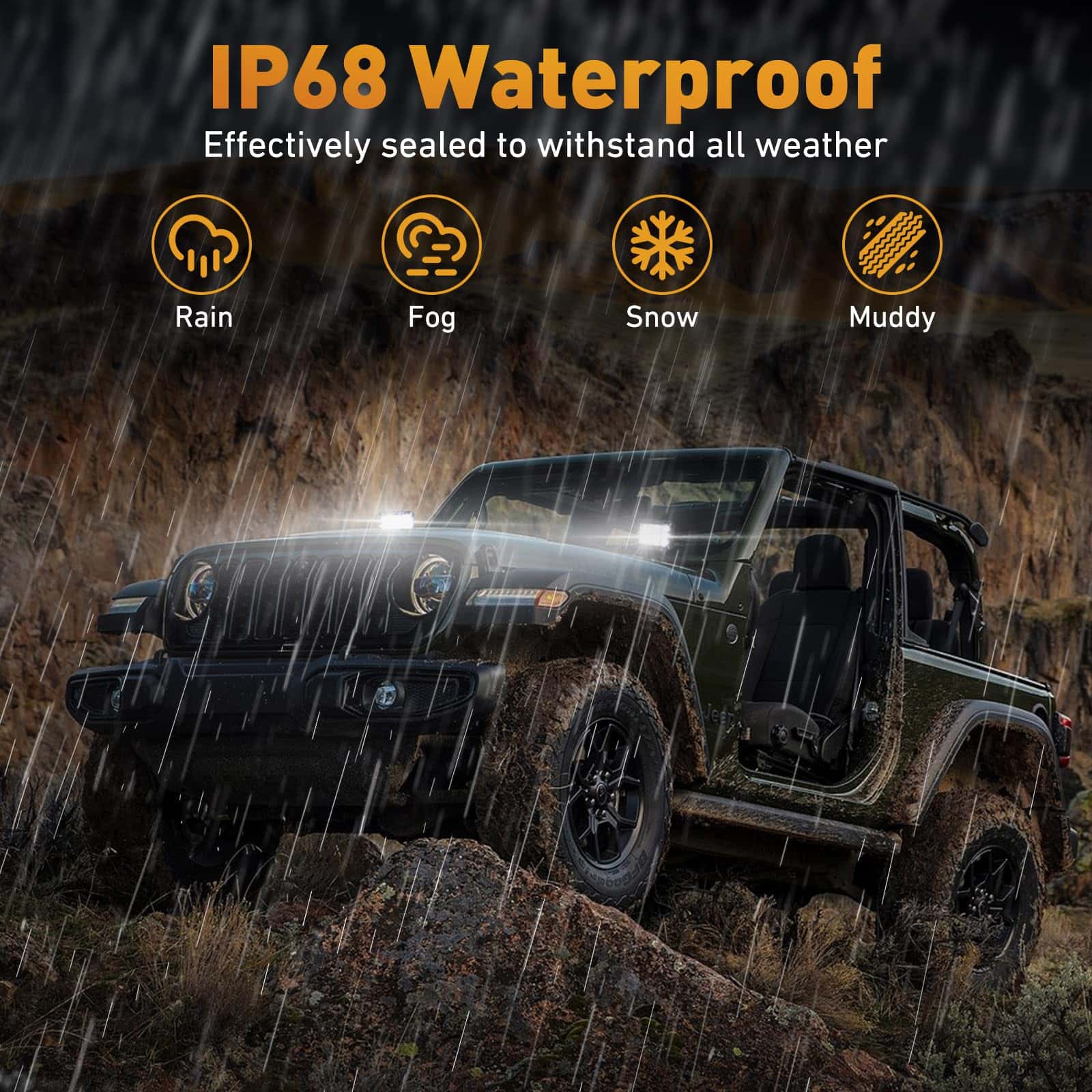 4. Mejor Disipación de Calor Los pods de luz de 4 pulgadas adoptan una carcasa de aluminio fundido y tecnología de sellado avanzada. El excelente disipador de calor disipa eficientemente el calor generado por los chips LED, lo que puede mantener una temperatura de funcionamiento estable incluso durante largos períodos de iluminación. Extiende efectivamente la vida útil de la barra de luz a más de 50,000 horas.