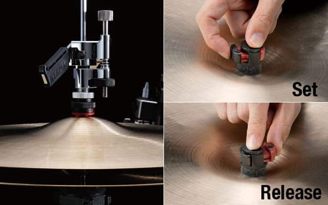 Al tocar el bajo doble, los platillos hi-hat se pueden cerrar golpeando la palanca en el embrague de caída. Mientras está en la posición de caída, el embrague de caída Sizzle Touch de TAMA permite ajustar la brecha entre los platillos superior e inferior, permitiendo ajustes precisos para lograr el sonido abierto deseado. Para reanudar la función normal del hi-hat, presione el pedal del soporte del hi-hat para asegurar el embrague de vuelta a su lugar como un embrague estándar.