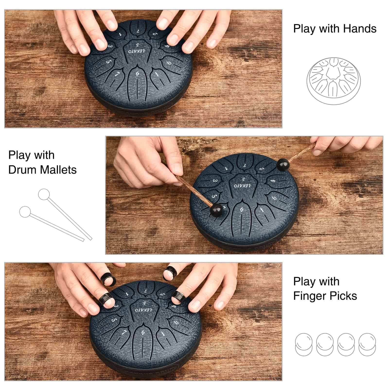 Tambor de Lengua de Acero de 6 Pulgadas 11 Notas, LEKATO