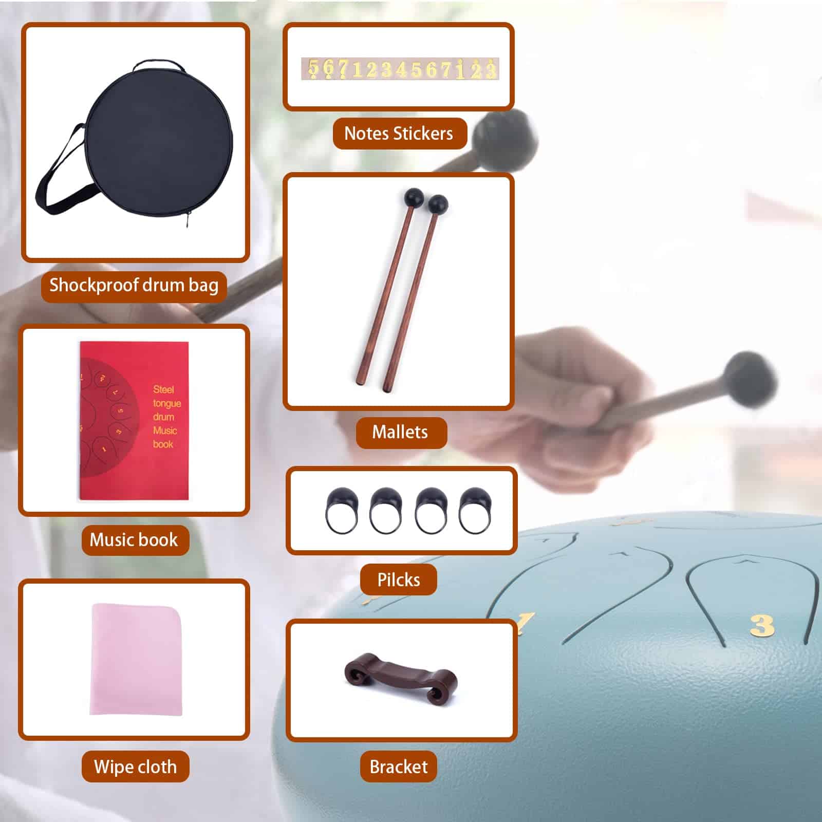 1. Artesanía: El tambor de lengua de acero VixxNoxx está hecho de acero al carbono de alta calidad para un mejor sonido y estabilidad. Tenemos criterios estrictos para la selección del acero, la afinación y el control de calidad del producto. La tecnología avanzada de pulverización permite que no haya descamación de pintura, arañazos, corrosión ni óxido. 2. Singularidad y Sonido Hermoso: La lengua del tambor adopta forma de pétalo de loto, que es única y hermosa. El tono es estable, claro y melódico, sin sonido de golpear hierro. El tambor de lengua se puede tocar con mazos o con los dedos, y es fácil de tocar incluso para principiantes en instrumentos. 3. Ámbito de Aplicación: Nuestro tambor de lengua es adecuado para diversos propósitos: meditación, entretenimiento, educación musical, concierto, curación mental, yoga, etc. El sonido etéreo y elegante de nuestro tambor de lengua puede aliviar tu estrés y calmar tus nervios. Es bueno para que los adultos alivien la presión y para los ancianos matar el tiempo. 4. Idea de Regalo Genial: El tambor de lengua es el regalo ideal para que tú y tu familia pasen un tiempo feliz juntos. Tocar el instrumento de sonido etéreo y curativo puede promover el desarrollo auditivo, así como el desarrollo visual. El tambor portátil de aspecto encantador también es un regalo perfecto para personas mayores, amigos y amantes de la música. 5. Kit incluido y Servicio al Cliente: 1 Tambor de lengua de acero, 1 Bolsa de tambor, 1 Libro de música, 1 Pegatinas de nota de repuesto, 2 Baquetas, 1 Soporte para baquetas, 1 Paño de limpieza, 4 Dedales. Ofrecemos una garantía de devolución de dinero incondicional de 30 días. Por favor, contáctanos si tienes alguna pregunta.