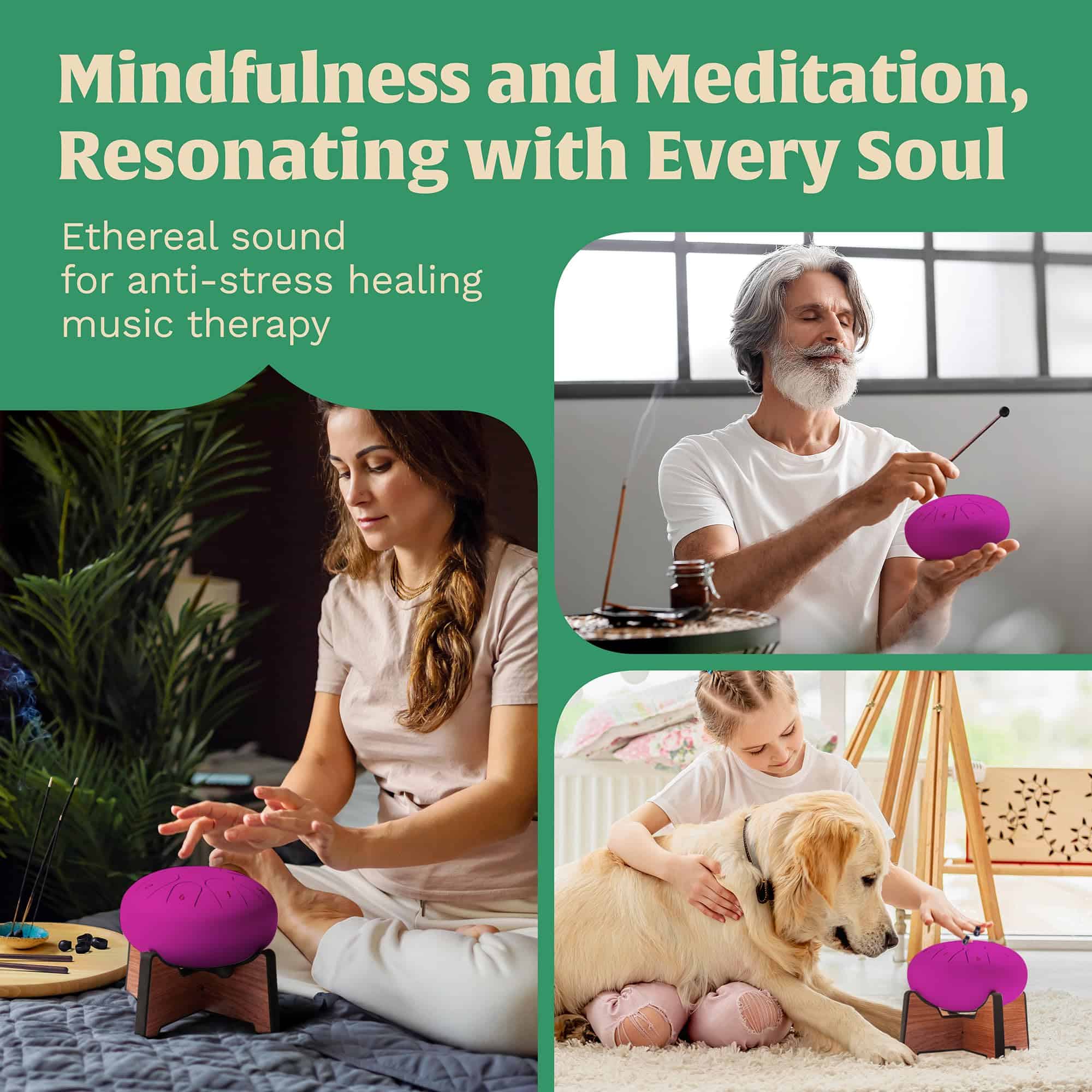 1. SONIDO MEDITATIVO ENCANTADOR. Instrumentos de curación del sonido como este tambor de lengua de mano crean una atmósfera de serenidad mágica para prácticas de atención plena. Piense en este tambor de meditación como un compañero tranquilizador e inspirador para la terapia musical.