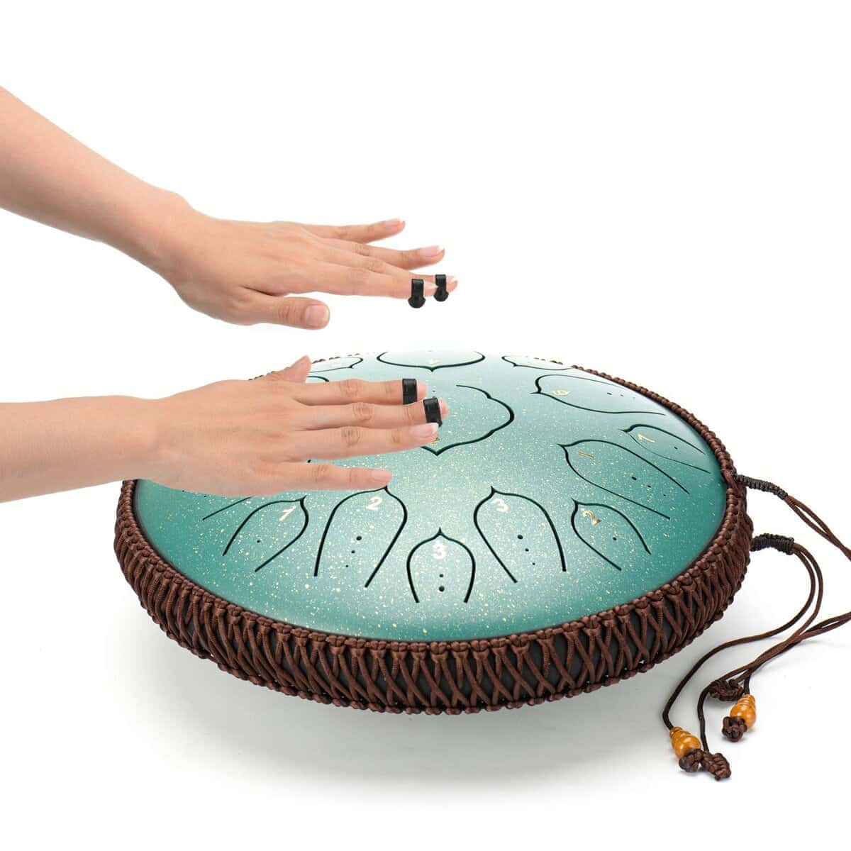 «OcarinaWind» tambor de acero está hecho a mano por artesanos profesionales. Aunque es simple en su estructura, el sonido es muy agradable y es un tipo de sonido como los tonos de Buda. Es más fácil de aprender y tiene un rango más amplio de sonidos. Incluso los principiantes pueden dominarlo fácilmente y tocar música maravillosa. No necesita una base, no necesita talento, es muy adecuado para la educación musical de los niños, para que puedan tocar con facilidad y no se aburran. Al mismo tiempo, debido a que su voz es muy etérea, también se utiliza en la sanación espiritual y la meditación de yoga. Es muy útil para calmar las emociones de las personas. Métodos de disfrutarlo: Usando las manos o mazas. Tocarlo con las manos exige estándares más altos de potencia en las manos y una posición de golpeo más precisa, por lo tanto, usar mazas es tu primera opción (especialmente para principiantes). El sonido bajo las mazas será más penetrante, más puro y más etéreo. Sosteniendo la maza 1/3 y golpeando el medio de la cabeza de la lengüeta, obtendrás el sonido perfecto. Si al tocarlo sale algún «ruido», es principalmente causado por golpear en un lugar incorrecto. Características: – Hecho a mano por artesanos profesionales, puede producir un sonido limpio, etéreo, como el de Buda. – Aplicable a una variedad de campos, incluida la educación musical, la sanación mental, la meditación de yoga, entre otros. – Hay un total de 15 tonos en D mayor, que tienen un rango más amplio de sonido y pueden tocar más música. – Viene con mazas y bolsa de transporte dedicada. Material del tambor: Acero al carbono Peso del tambor: 7.6LB (3.45 kg) Tamaño del tambor (L x An x Al): 14″ x 6″ x 14″ / 35 x 15 x 35 cm Todo incluido: 1 x Tambor de Lengüeta de Acero, 2 x mazas con soporte, 1 x Bolsa de Tambor Acolchada, 1 x Pegatina de Tono, 1 x Libro de Música (con Instrucciones), Púas para los Dedos