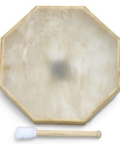 El Tambor de Marco/Bodhran Multicultural GMP de 18″ (38cm) Octogonal con Cabeza de Piel de Cabra Natural es un instrumento atemporal empapado en tradición y diseñado para entusiastas de todos los niveles de habilidad. Este estilo de tambor de marco está presente en muchas de las culturas del mundo, lo que lo convierte en un instrumento versátil y multiusos. Elaborado con esmero, este tambor presenta un resistente marco de madera y una cabeza de piel de cabra estirada que resuena con tonos ricos y auténticos. Este tambor se acompaña de un mazo/batón envuelto en cuero, cada golpe produce sonidos hipnóticos que cautivan a los oyentes. Diseñado para facilitar su uso, la parte trasera del tambor está asegurada con nervios resistentes, formando un mango de fácil agarre para una maniobrabilidad sin problemas. Para tocarlo, simplemente golpea el centro del tambor con el batón mientras sostienes el tambor por sus mangos. Este tambor es perfecto para círculos de tambores, actuaciones, festivales, salones de clase y reuniones culturales. Este instrumento de percusión es ideal para músicos, maestros, estudiantes, entusiastas culturales, intérpretes, terapeutas musicales, círculos de tambores y entusiastas de la música folclórica. Nota: debido a la naturaleza artesanal del tambor de marco, puede haber variaciones en la redondez, tamaño, color y pigmento de la piel.