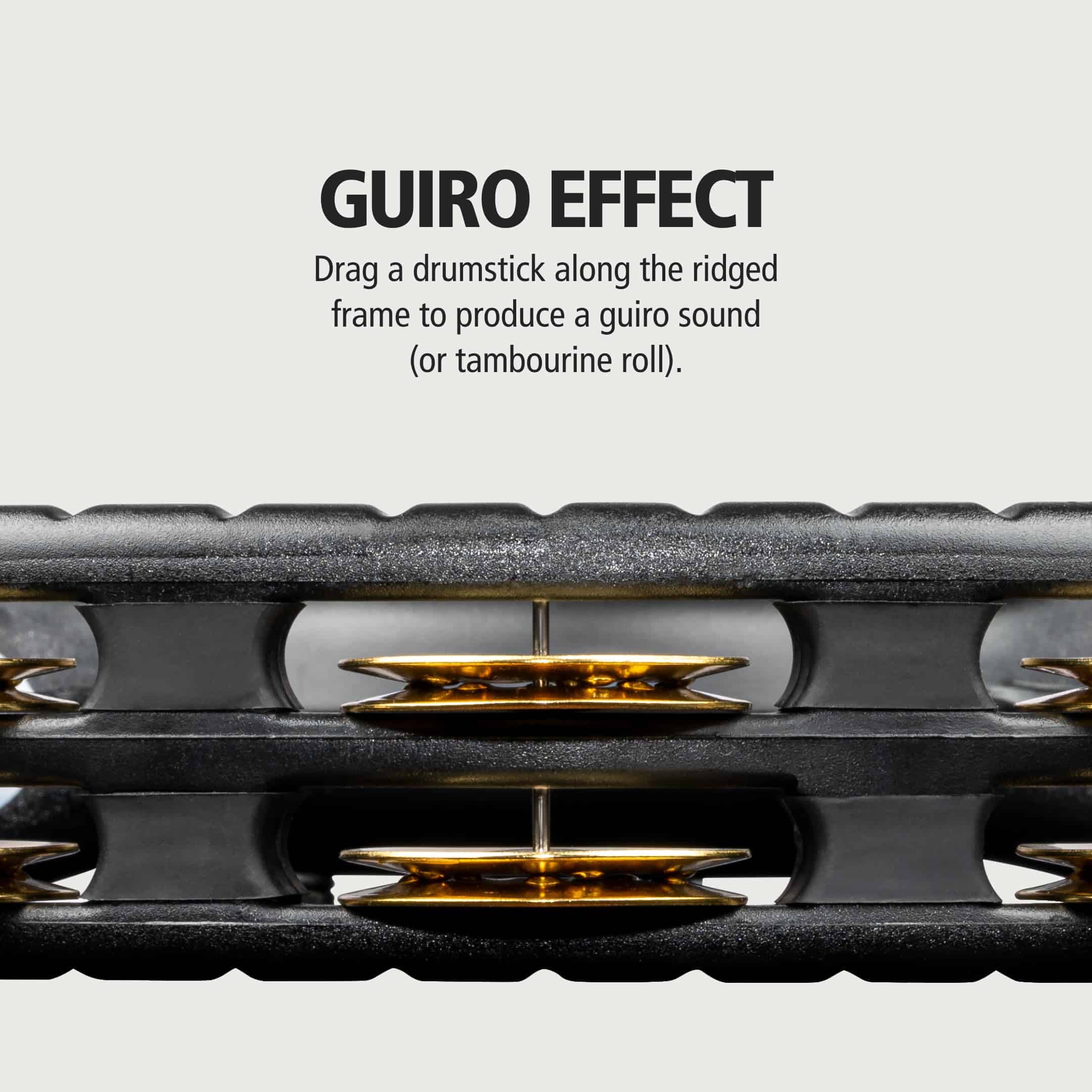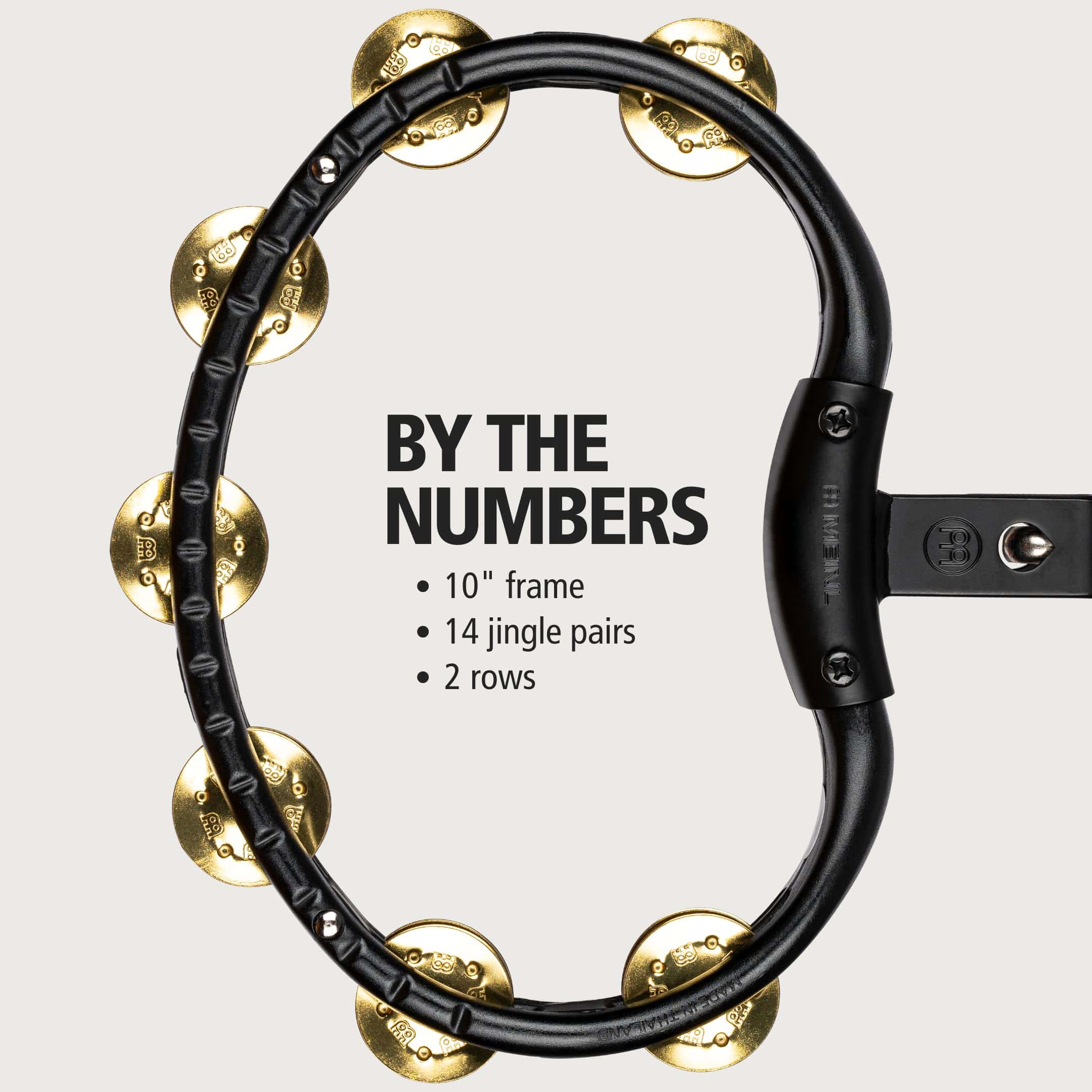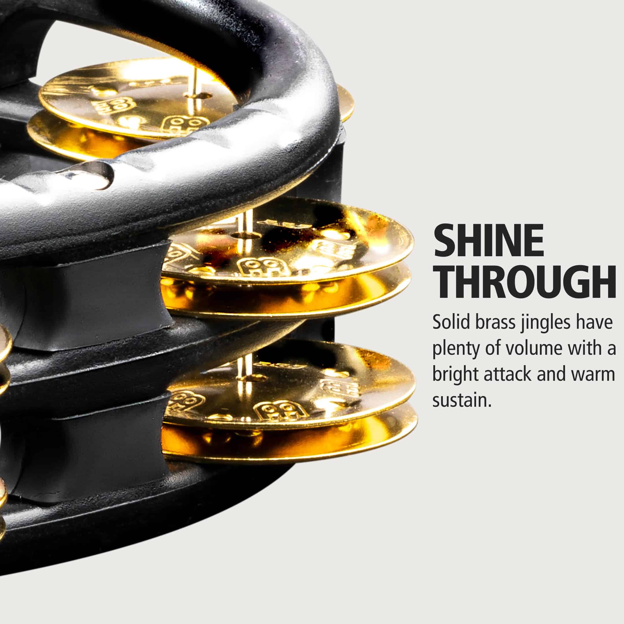 El duradero marco de ABS permite golpear con fuerza y tocar de manera enérgica. Ofrecen un sonido cálido pero cortante. Los Tamborines de mano y montaje de MEINL (diseño protegido por un modelo de utilidad) tienen una ventaja de diseño distintiva debido a la construcción del marco de ABS. A diferencia de otros tamborines, MEINL utiliza varias piezas diferentes en el marco que se ensamblan en una especie de sándwich. Esto resulta en una durabilidad insuperable.