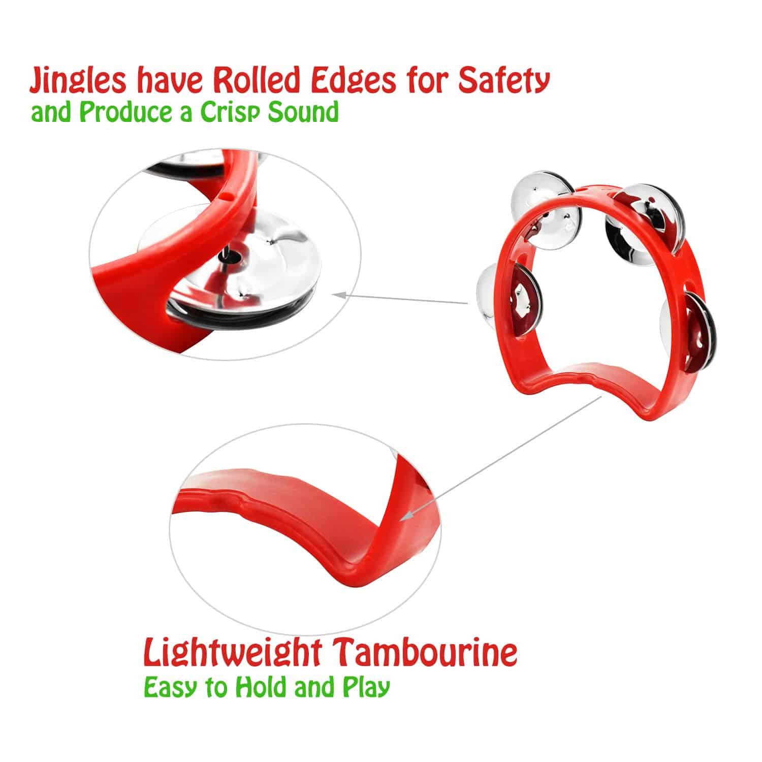 MUSICUBE 12 Pcs Tambor de Plástico: El tamborín de plástico de MUSICUBE es un excelente instrumento musical para niños y adultos. Con 4 campanas incorporadas, este tamborín produce un sonido vibrante y divertido que es perfecto para fiestas, jardín de infantes y actividades familiares. Fabricado con plástico resistente y ligero, este tamborín es seguro para los niños y fácil de transportar. Cumple con los estándares de seguridad de TUV y ASTM F963. Además, ofrecemos un servicio postventa excepcional, con una garantía de 1 año para su tranquilidad. ¡Consigue tu set de tamborines MUSICUBE hoy y disfruta de la música en cualquier lugar!
