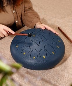 Formas de disfrutar Con tus manos o mazos. Tocar con tus manos requiere más fuerza y una colocación más precisa, por lo que usar mazos es tu primera opción (especialmente para los recién llegados). El sonido bajo el mazo será más penetrante, puro y etéreo. Sujeta el mazo 1/3 de su longitud y golpea el centro de la lengüeta y obtendrás un sonido perfecto. Si hay algo de «ruido» durante la reproducción, esto se debe principalmente a golpear en el lugar equivocado. El tambor de lengüeta tiene un tono etéreo y hermoso que puede ayudar a las personas a olvidar sus preocupaciones, expandir sus mentes y mejorar su salud física y mental. Puedes tocar en cualquier lugar, relajar tu mente y cuerpo en cualquier momento y dar un gran espectáculo para todos. Tocar el tambor de lengüeta es una combinación de filosofía, religión, cultura y arte. Es ideal para yoga, meditación y zen. Es fácil olvidar tus preocupaciones tocando este tambor de lengüeta, lo que lo convierte en un regalo maravilloso para tu persona favorita. No importa cuál sea tu habilidad o experiencia musical, este tambor de lengüeta es fácil de tocar. El instrumento viene con un bolso similar a terciopelo para guardarlo y transportarlo fácilmente.