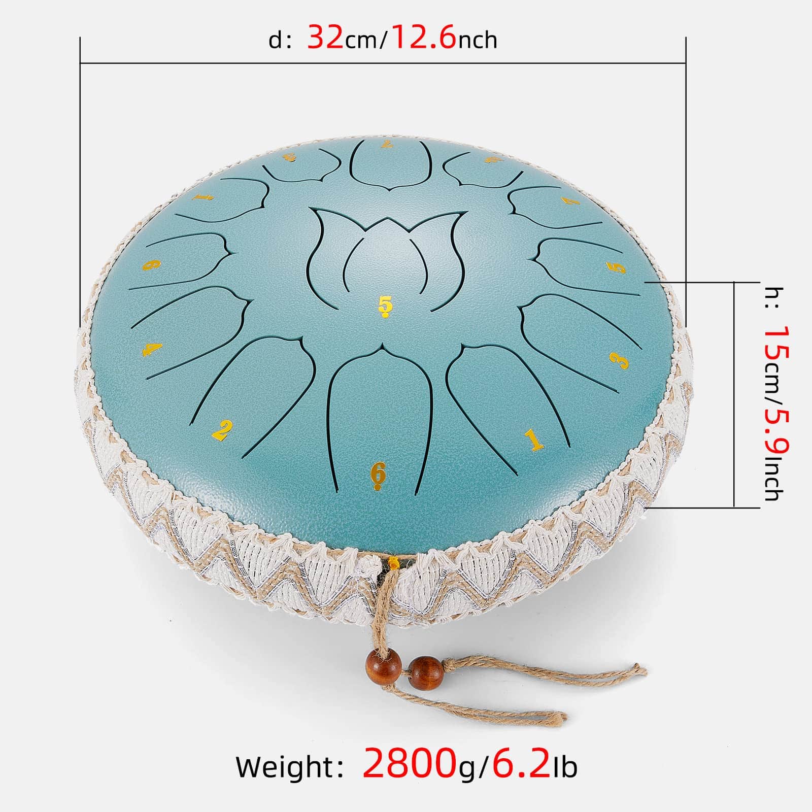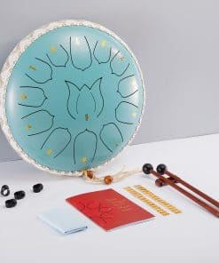 1. 11: Diseño y Artesanía El tambor de acero está hecho de aleación de carbono puramente a mano, el tambor es completo y redondo. La cavidad interna del tambor de lengüeta es hueca y puede proporcionar una mejor calidad de sonido, el sonido de lengüeta producido al golpear impulsa toda la cavidad a producir la resonancia de un instrumento de percusión. Cuando se golpea el tambor de lengüeta con una baqueta, produce vibraciones, y una vez dominado el ritmo básico, se puede golpear en un ritmo hermoso que es fácil de aprender. 2. 2: Un sonido más etéreo El tambor de acero de 12 pulgadas con 13 notas. El sonido de diferentes ritmos se produce por la vibración circular del aire y del cuerpo del tambor. El sonido resuena a través del aire y es más duradero y etéreo que los ecos de otros instrumentos, dejándote con una sensación de relajación y placer desde dentro. 3. 3: Rango de aplicación La música melodiosa y calmante puede aliviar el estrés y calmar tu estado de ánimo nervioso lentamente, puedes tocarla en picnics al aire libre, servicios religiosos, reuniones familiares, cenas en bares o bailes, etc. Los tambores tienen un hermoso sonido suave y un volumen moderado, que es amado por la gente, mujeres y ancianos, y es bueno para que las personas desarrollen sus pasatiempos y para que los amigos de mediana edad y ancianos mejoren su imaginación y capacidad de reacción. 4. 4: Ideal para principiantes El tambor de lengüeta de acero tiene notas en él, puedes usar las baquetas incluidas o seguir las notas con tus manos para tocar el tambor de acero, la partitura incluida facilita que los principiantes aprendan y toquen. La funda de transporte incluida facilita el transporte. 5. 5: Kit de instrumentos Este conjunto de instrumentos incluye: 1 tambor de lengüeta de acero, 1 bolsa para tambor, 2 baquetas, 1 soporte para baquetas, 1 partitura, 1 notas de repuesto, 4 almohadillas para dedos, 2 pegatinas de notas. Equipado con estas piezas musicales, simplemente lleva un espíritu de exploración y encuentra tu corazón.