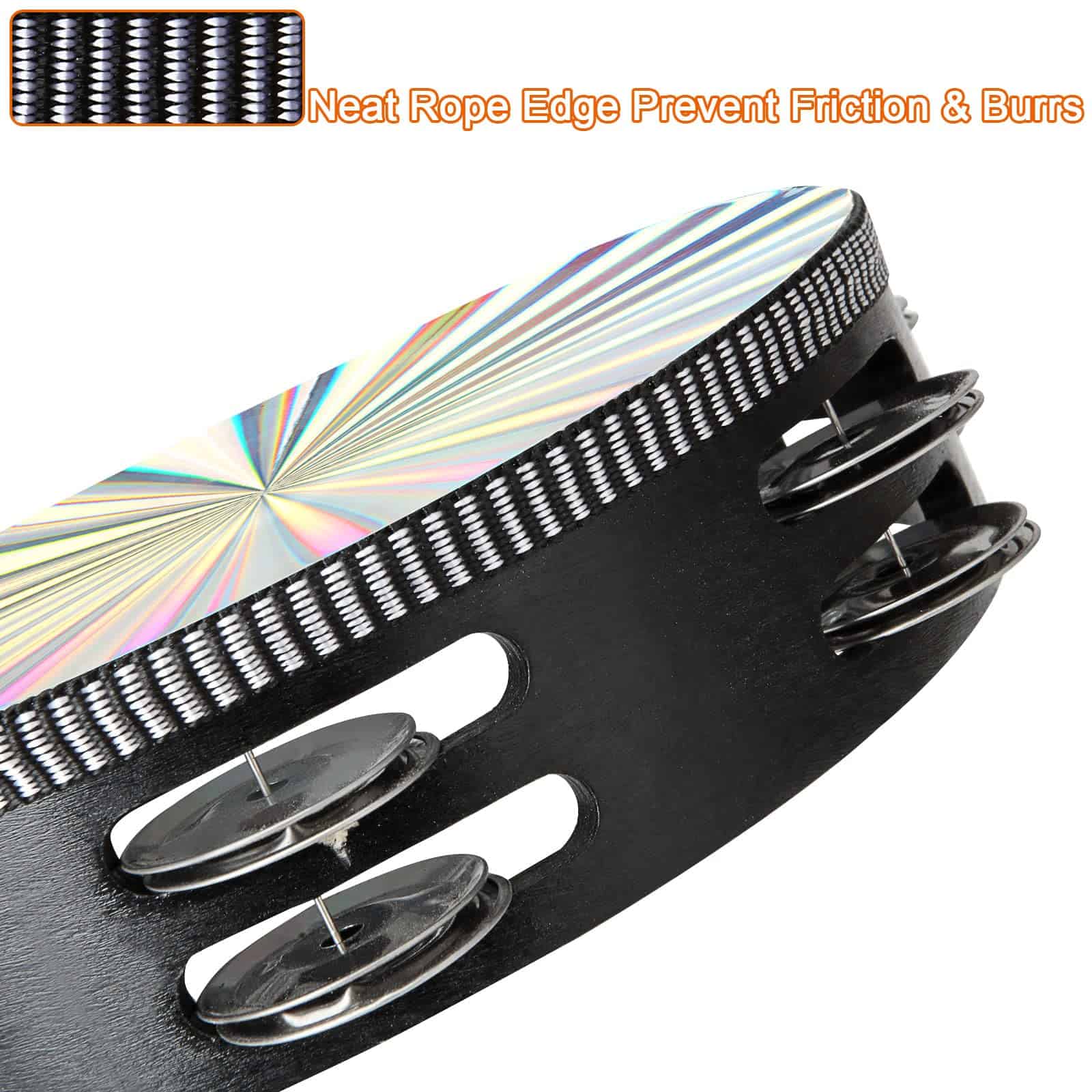 Especificaciones: Material principal: Madera Material de las platinelas: Metal Tamaños: 6/8/10 pulgadas Lista de paquetes: 3 Tamborinas Radiantes