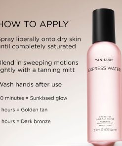 TAN-LUXE Express Water es un innovador autobronceador hidratante que potencia nuestra fórmula icónica de Agua con propiedades adicionales hidratantes y antienvejecimiento, para proporcionar un bronceado natural besado por el sol. Este producto de múltiples pasos no solo te dará un brillo saludable, sino que también simplificará tu rutina de cuidado de la piel al actuar como una esencia hidratante y autobronceador gradual al mismo tiempo. Vegano y libre de crueldad, TAN-LUXE Express Water es la elección perfecta para aquellos que buscan un bronceado sutil y saludable sin comprometer la ética.
