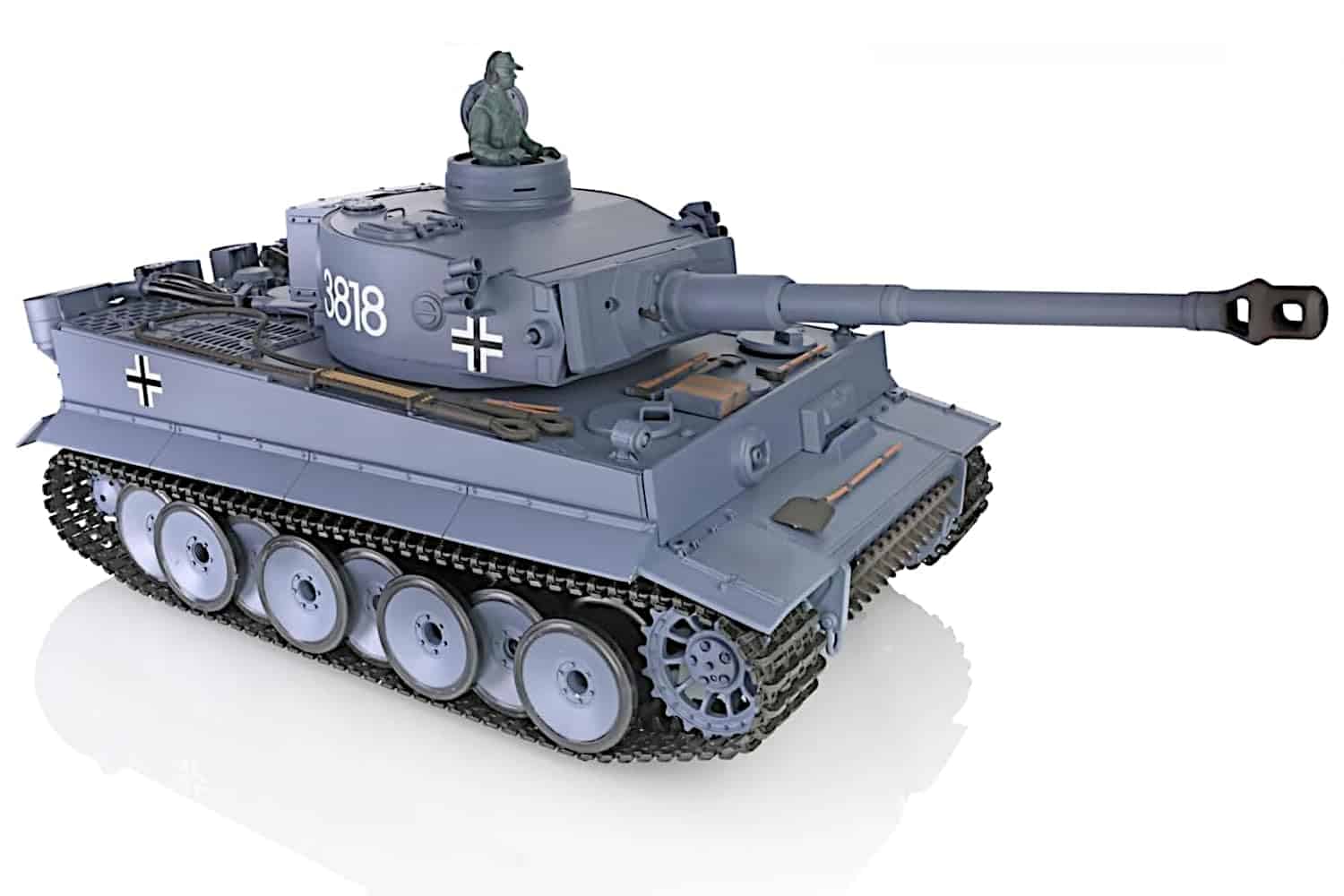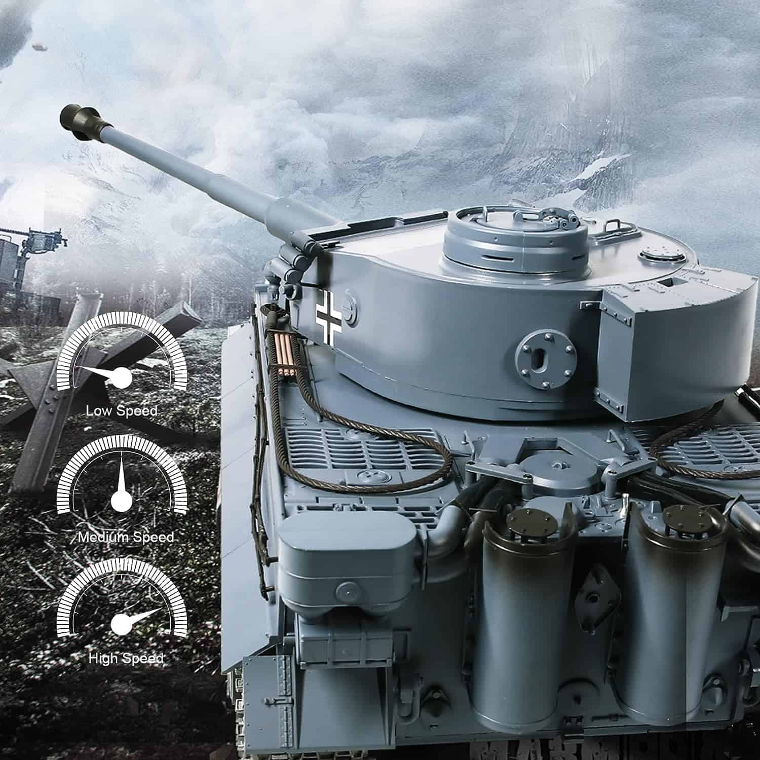 Réplica del Tanque Alemán Tiger 1 de la II Guerra Mundial a Escala 1/16; Sistema de batalla dual: combate por Infrarrojos IR y disparo de Airsoft BB de 6mm.