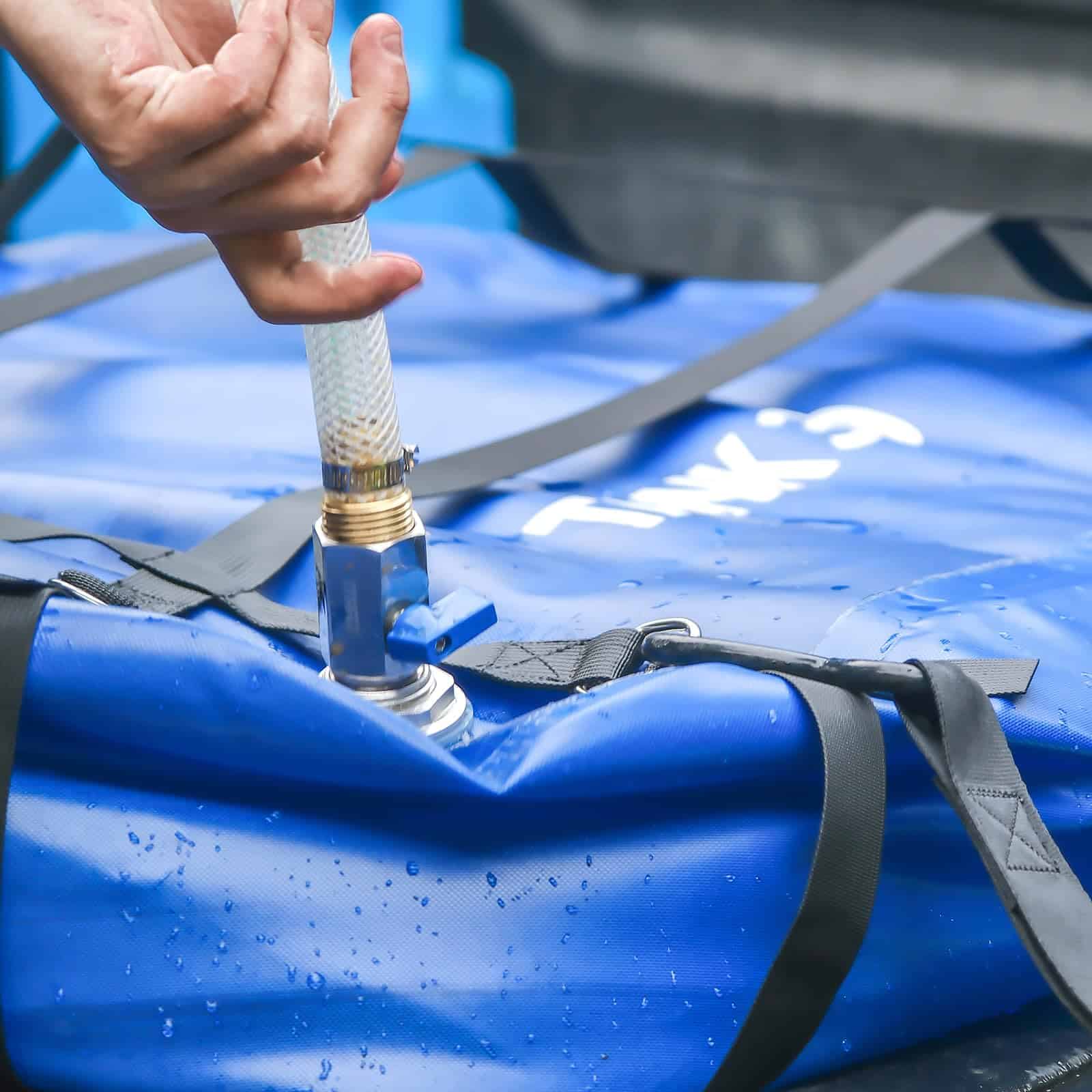 4. Sistema de Fijación en Ingeniería: El tanque de vejiga de agua ITRAZ cuenta con un sistema de fijación único con cuatro correas de nylon de alta densidad equipadas con hebillas de anillo en D de acero inoxidable. Esta estructura especializada, ampliamente utilizada en la ingeniería, puede soportar una fuerza de tracción tres veces su propio peso. Necesitas usar correas de trinquete conectadas a los anillos en D para asegurar la vejiga de agua a la plataforma de la camioneta, evitando desplazamientos en el centro de gravedad y asegurando la seguridad al conducir en cualquier terreno.