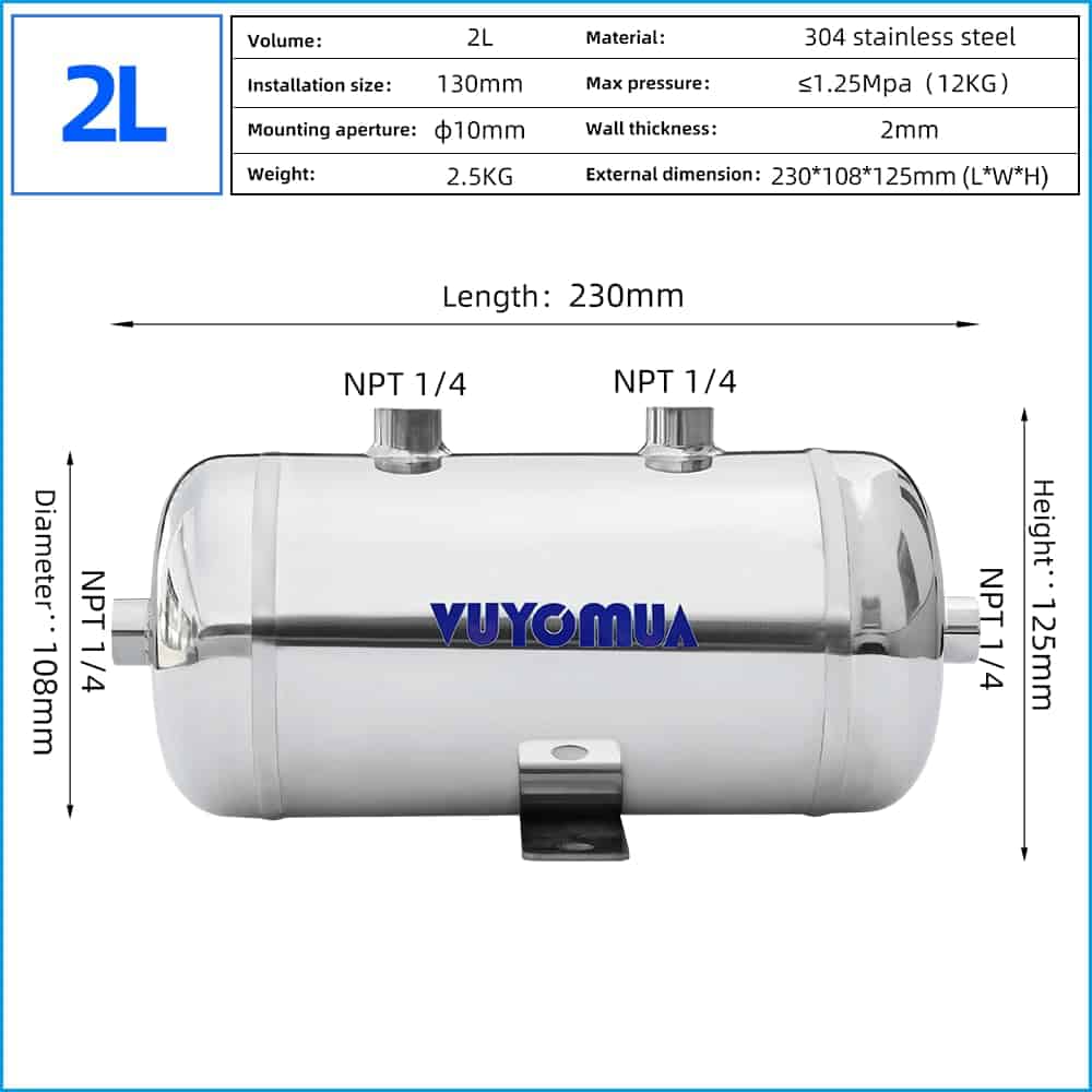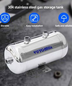 El Tanque de Aire VUYOMUA está diseñado para ser portátil y fácil de usar, este tanque de aire portátil puede ir a donde lo necesite. Más aire, menos ruido y fácil de usar. Amplia gama de aplicaciones, se puede utilizar en la producción industrial, tanques de almacenamiento de energía automotriz, tanques de amortiguación de vacío. El tanque de almacenamiento se utiliza en conjunto con las piezas de conexión (juntas de traquea, tapones, válvulas de seguridad, manómetros, válvulas de drenaje).