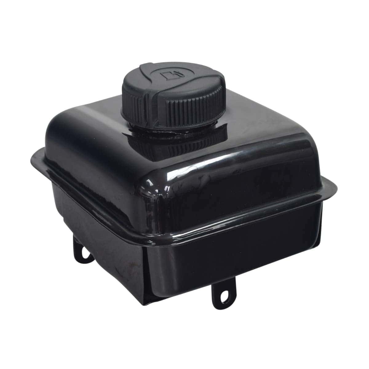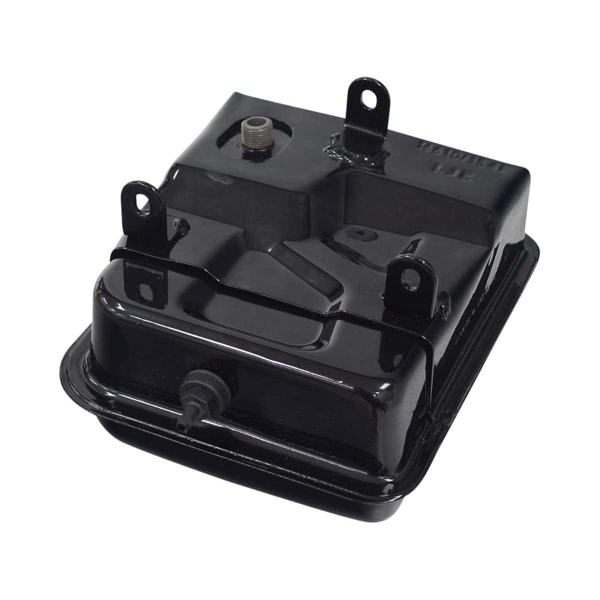 El tanque de combustible para go-karts Coleman CK100 y SK100 incluye el tanque de acero esmaltado negro y la tapa. Este tanque de combustible es fácil de instalar y es una solución económica para un tanque de gasolina con fugas o dañado en su go-kart Coleman CK100 y SK100. La tapa está en el centro de la parte superior.