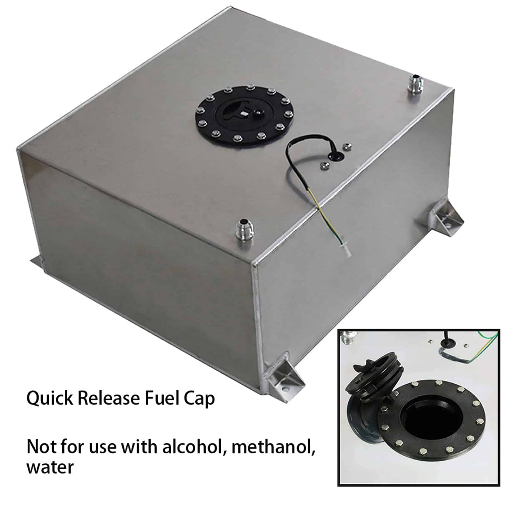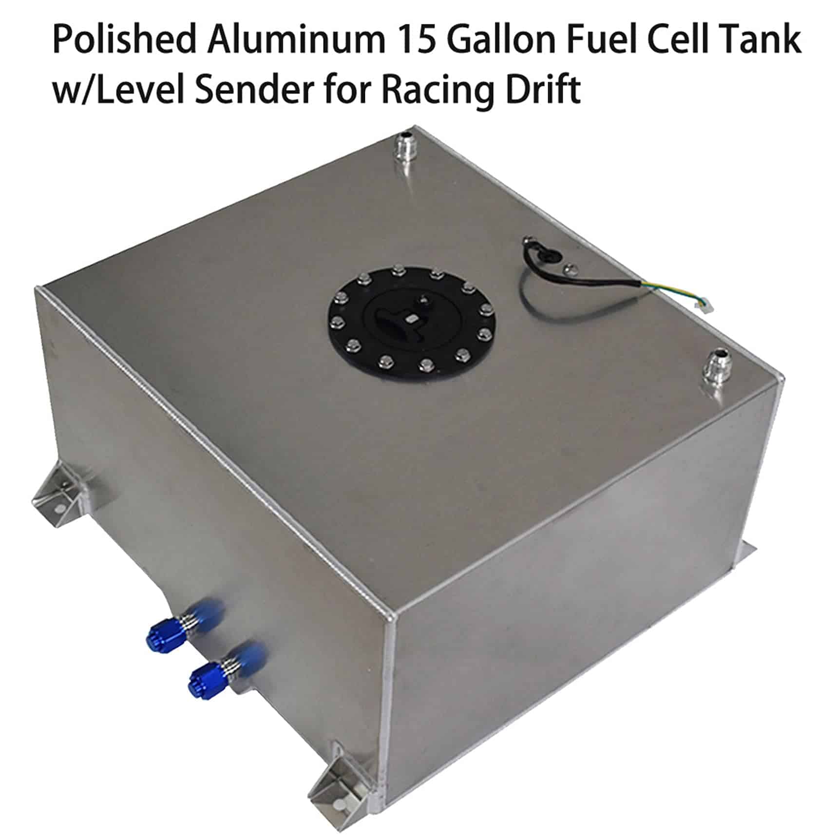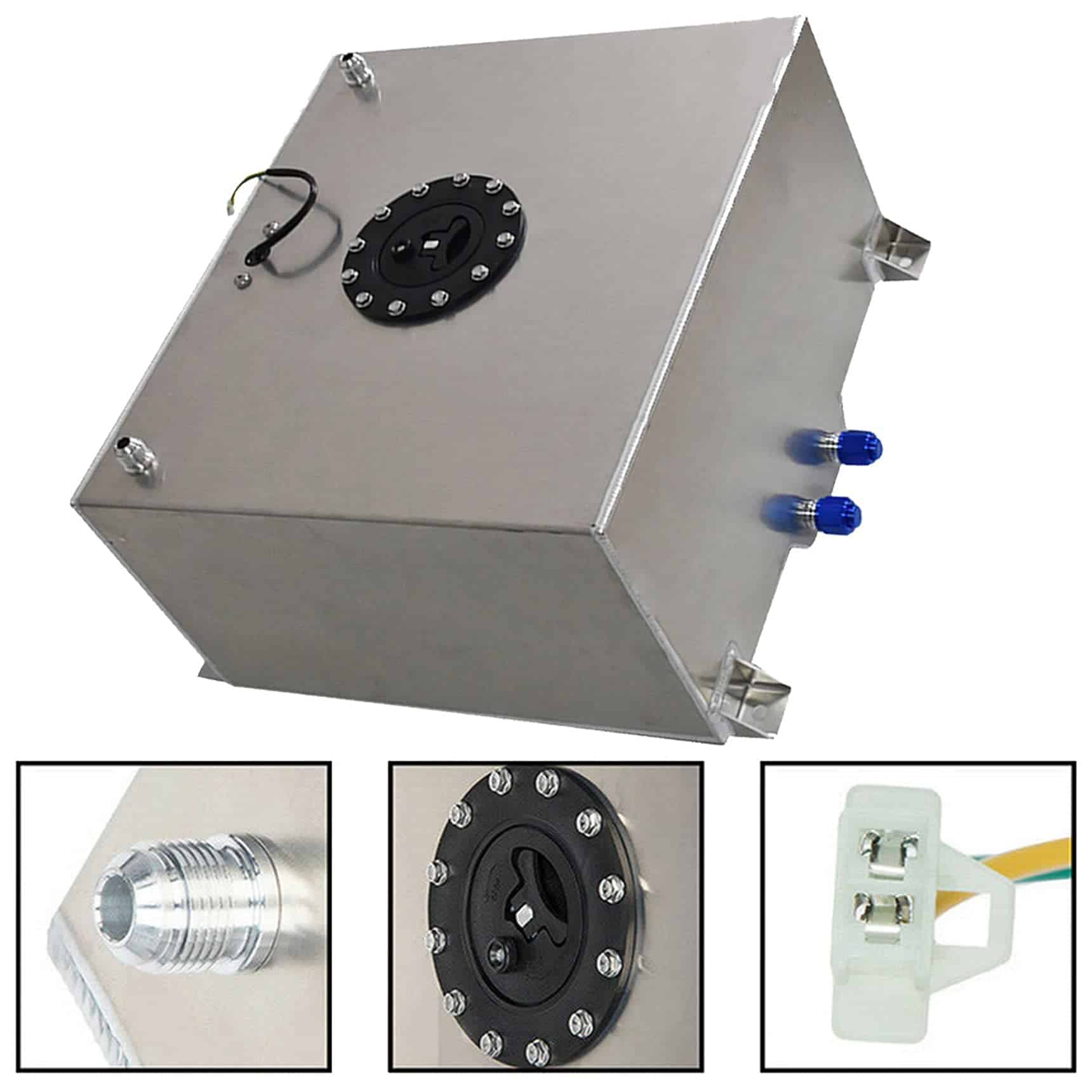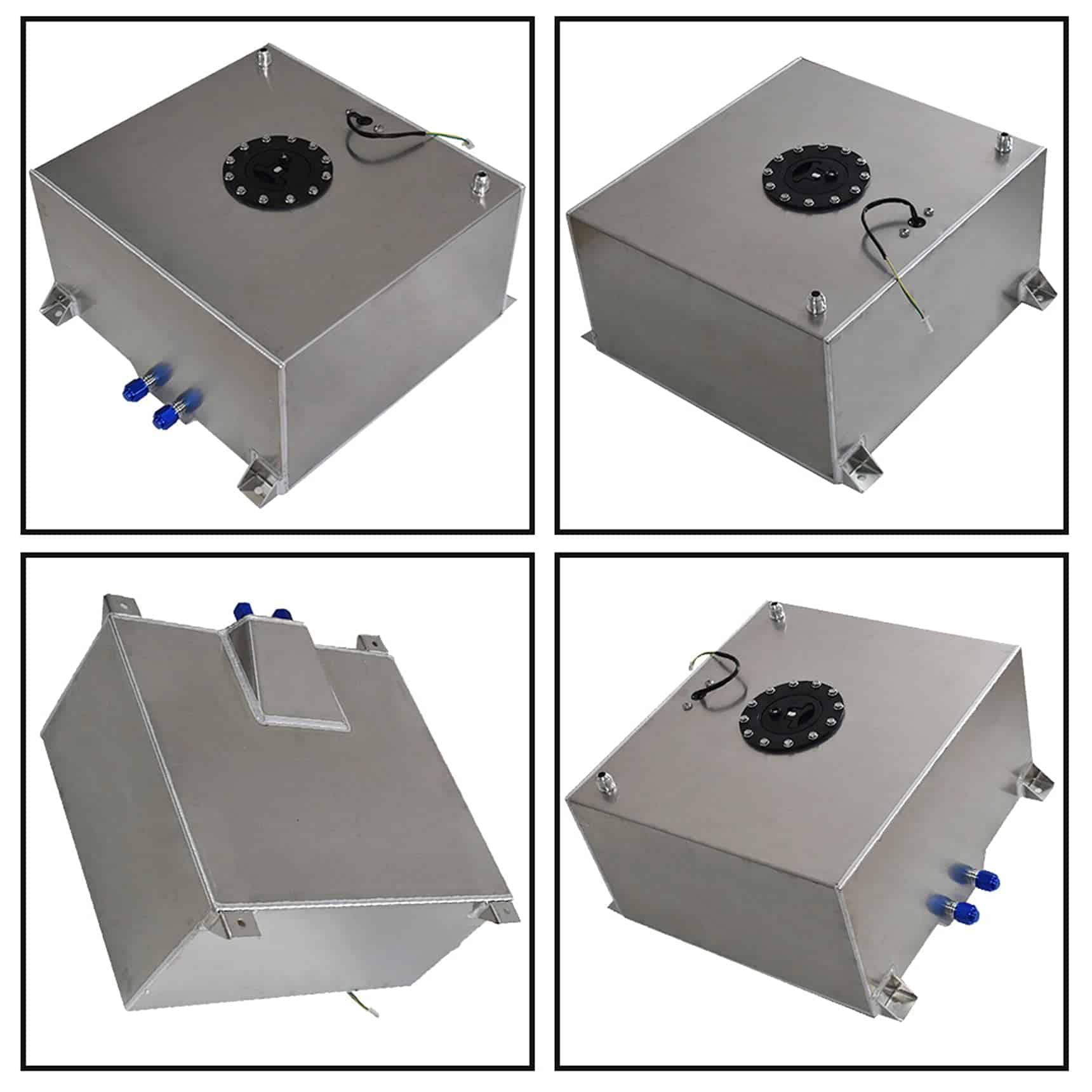 Tanque de Combustible de Carreras y Drift de Aluminio Plateado de 15 Galones con tapa y sensor de nivel. Características: Color: Plata Volumen: 15 Galones Hecho de aluminio de alta calidad, duradero. Medidas del tanque: 19.6(L) x 20.7(W) x 10(H) pulgadas. Doble salida de 10 / Doble salida de ventilación de 10 (parte superior del tanque) Sensor de nivel de combustible de 0-90 Ohm. Fácil de instalar y mantener. Paquete incluye: Como se muestra en la imagen.