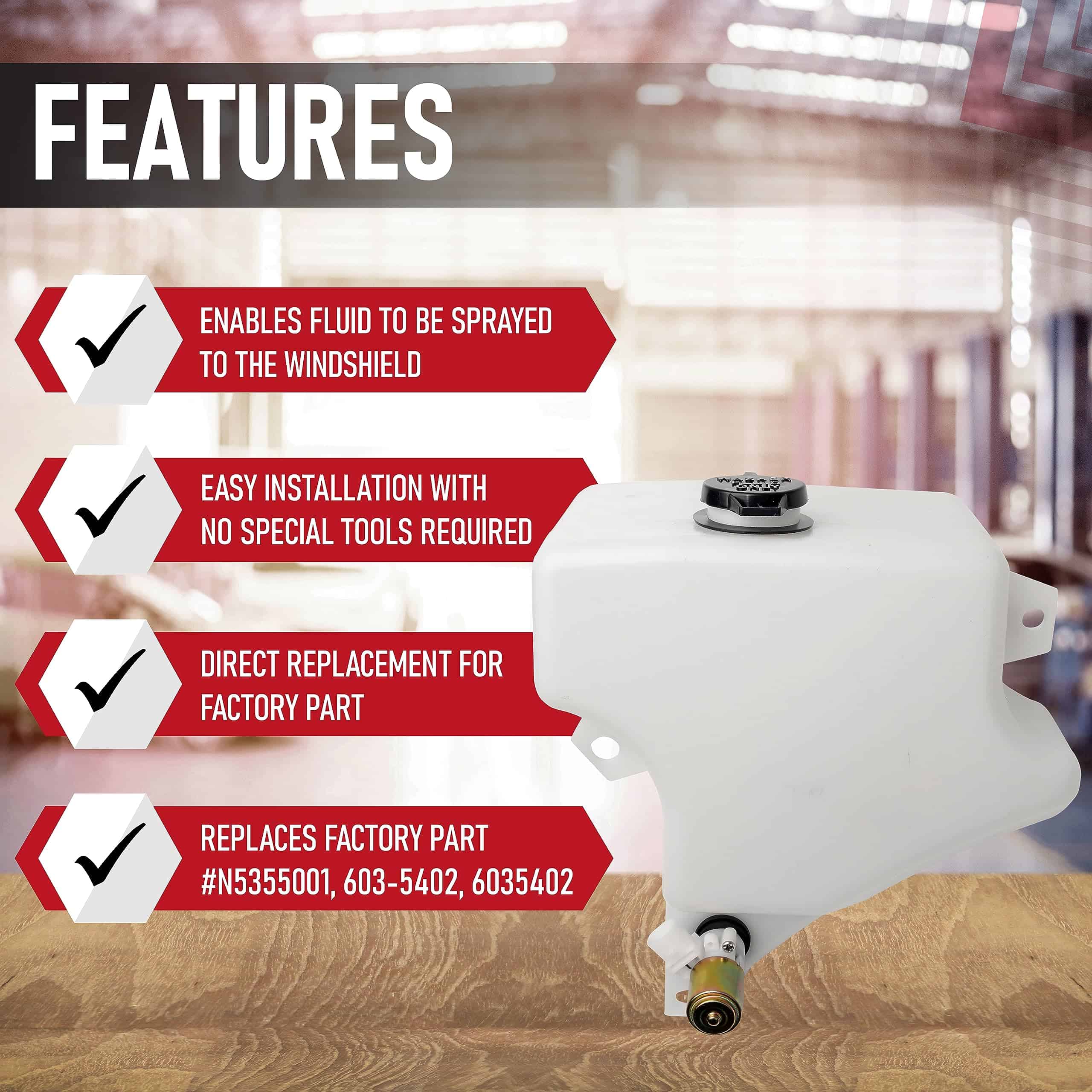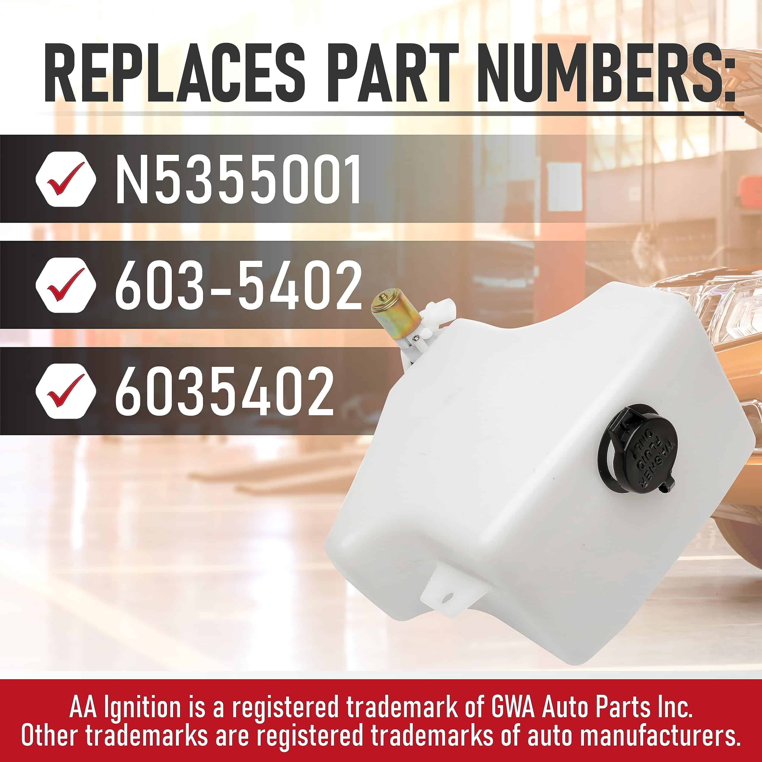 El tanque de líquido de lavaparabrisas de repuesto está diseñado para camiones Kenworth y Peterbilt, incluidos los modelos T680, T880, 335, 367, 384, 385, 386, 387, 388, 389. Está hecho de plástico de alta calidad y viene con una bomba que facilita el flujo del líquido del lavaparabrisas a través de las líneas de plástico hasta las boquillas del lavaparabrisas para garantizar un rocío uniforme en su parabrisas. Este tanque de lavaparabrisas es una pieza de repuesto compatible que reemplaza las partes N5355001, 603-5402, 6035402. Si observa que el líquido del lavaparabrisas está filtrando desde abajo de su camión, si el líquido no se rocía en el parabrisas, si el tanque del líquido del lavaparabrisas está frecuentemente bajo o vacío, o si ve grietas en el tanque, entonces es hora de reemplazarlo. Esta pieza de repuesto se ajusta a modelos populares de Kenworth y Peterbilt con años desde el 2000 hasta el 2019. El tanque de líquido de lavaparabrisas de AA Ignition es un ajuste OEM directo con una calidad y acabado excepcionales. Si la pieza falla en su camión, simplemente contáctenos para un reemplazo. Ahorre tiempo y dinero reemplazando la pieza usted mismo y aproveche nuestras ofertas exclusivas. Consulte nuestro sitio web para obtener más detalles sobre este tanque de líquido de lavaparabrisas de alta calidad.